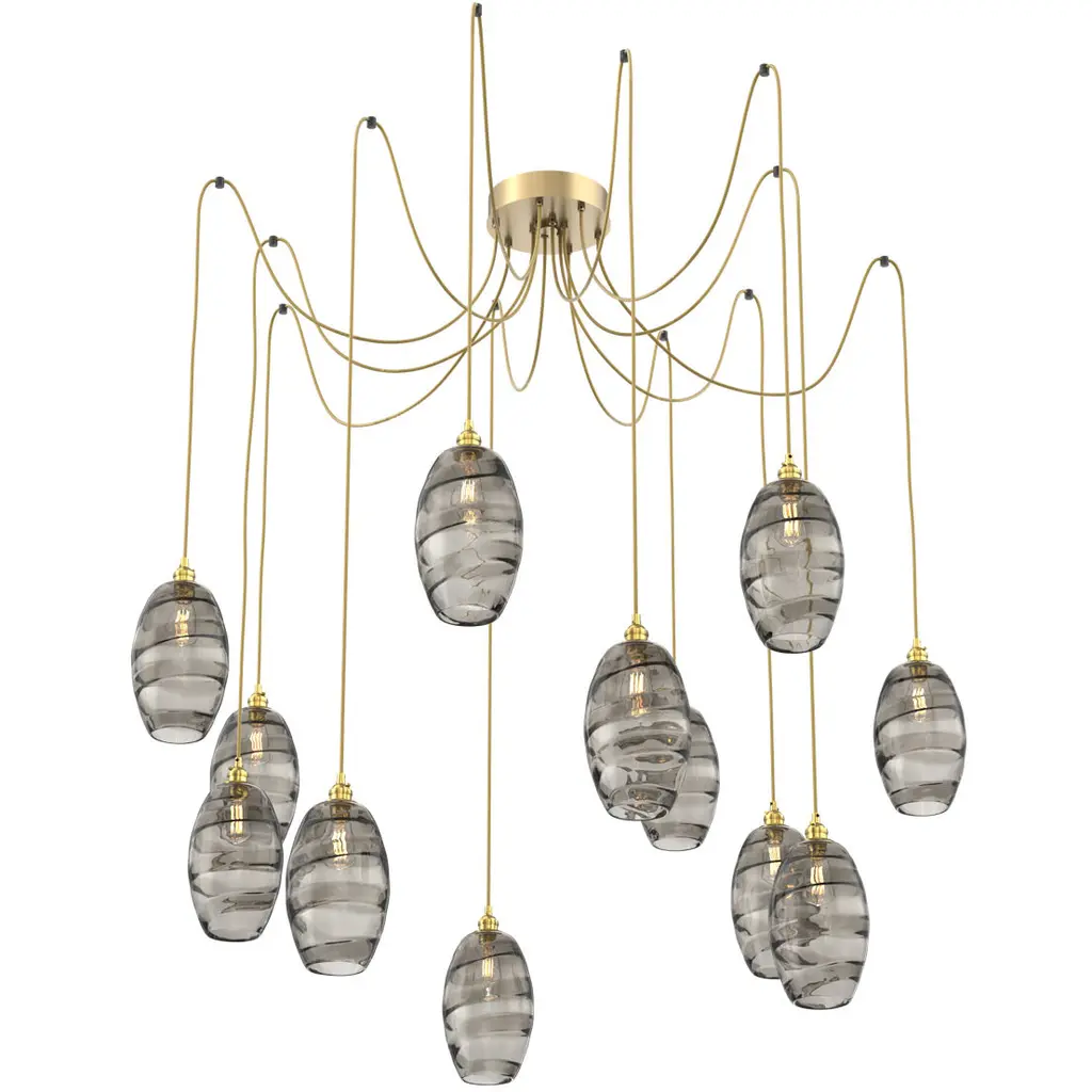 Meteo Led 17 Inch Novel Brass Swag Multi-Pendant Ceiling Light In 3000k Led, Zircon Inner - Smoke Outer
