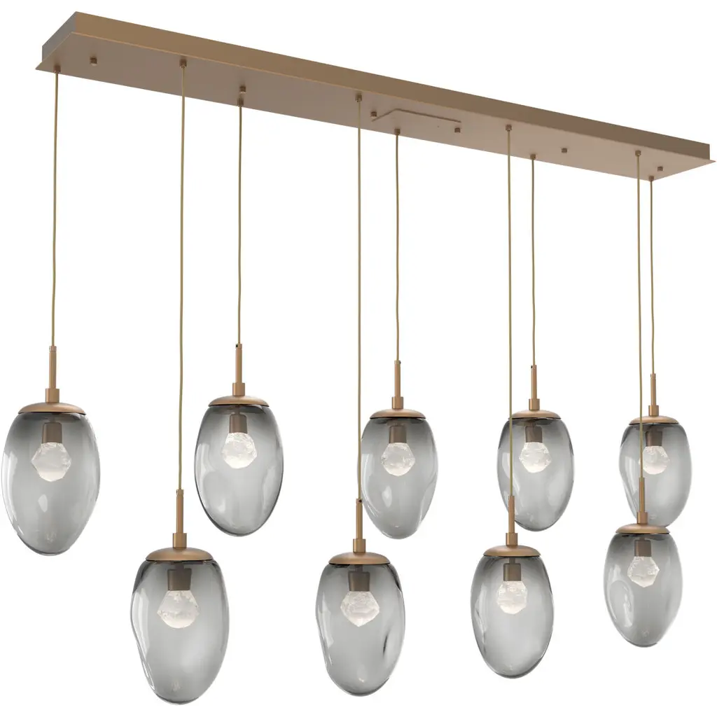 Meteo Led Led Gilded Brass Linear Pendant Ceiling Light In 3000k Led, Zircon Inner - Smoke Outer, Multi-Port