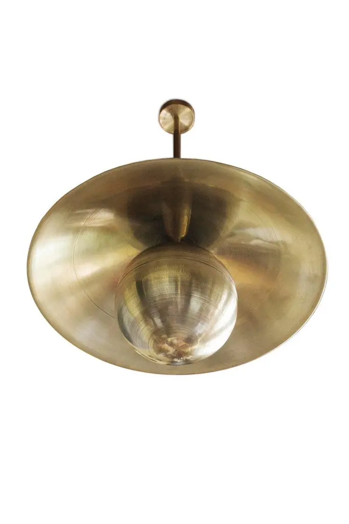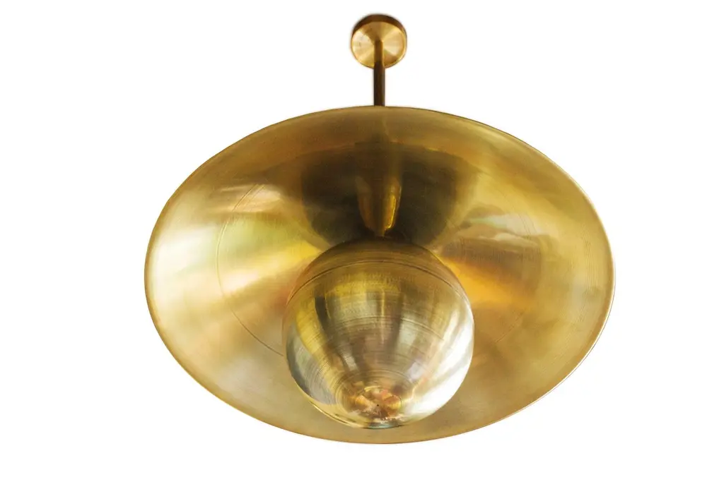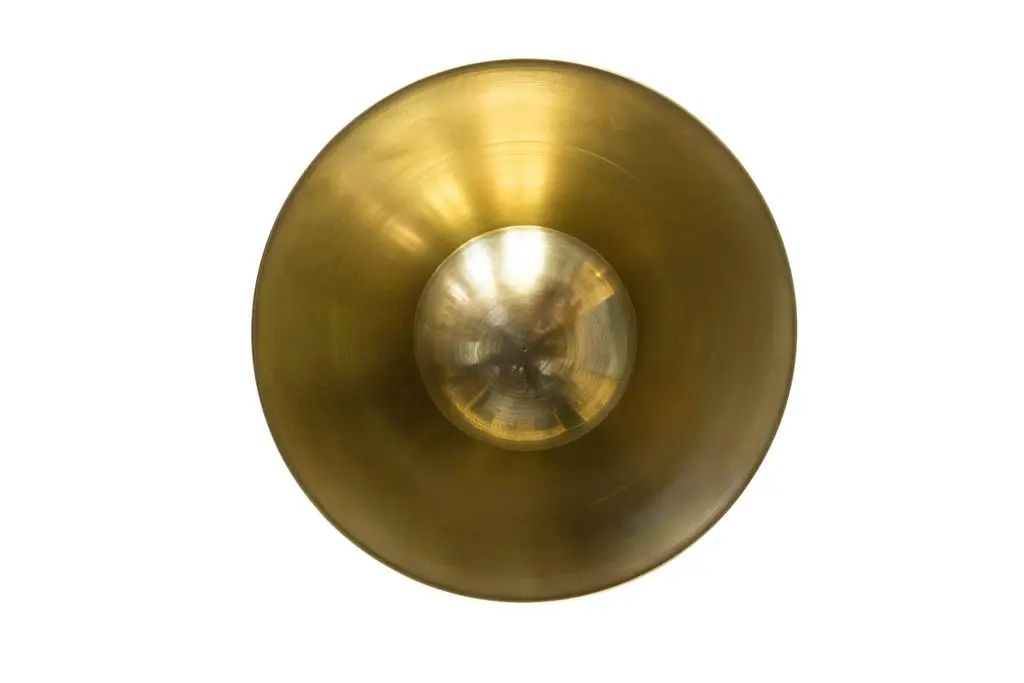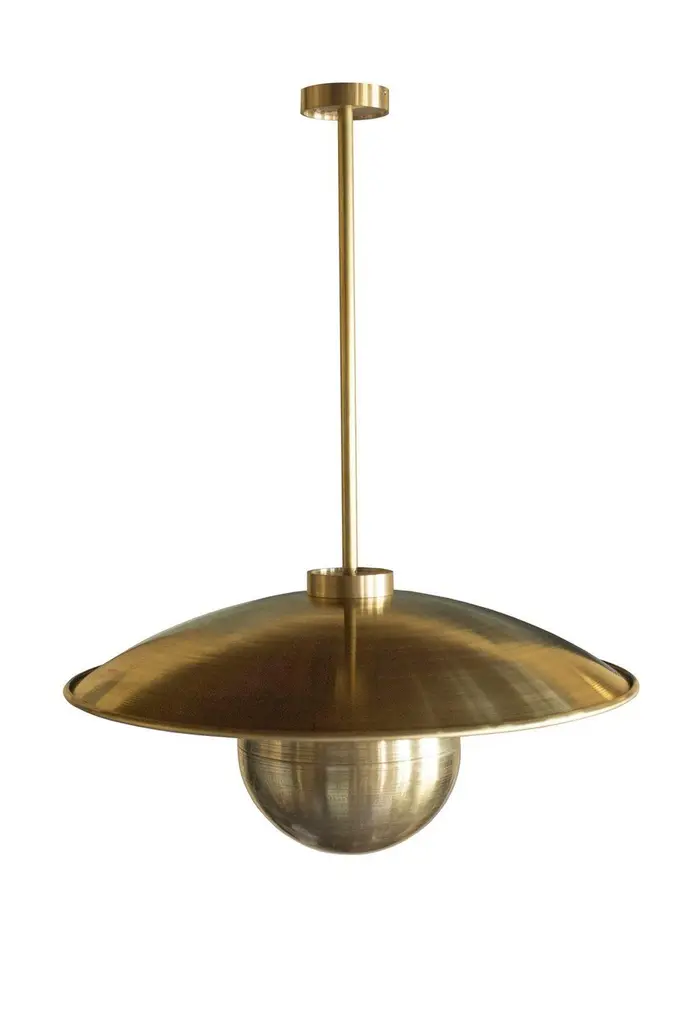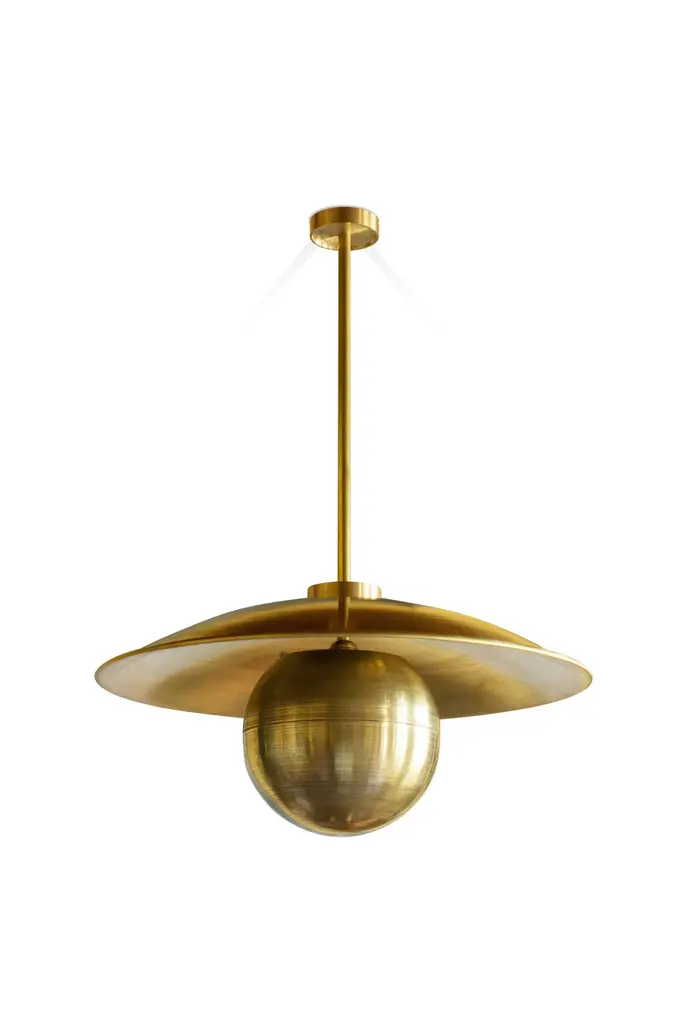 Metropolis Brass Contemporary Suspension Pendant Lamp by Jan GarncarekDimensions: 100 x 52 cmMaterial: brassHandcrafted by Jan Garncarek.Signed and numbered.Information:weight:5 kg / 11 lbvoltage: 120V, 240Vlamping: 3 x E27, 60W, 50-60Hzlumens:800 Imkcolortemperature: 3000 Ktightness class: IP 21certificates: CE approved, RoHSfinishes: - brass (waxed)- nickel coating- copper coating- age brassSpun metal sheet, rounded and swollen forms. Light emanating from within the sphere and reflecting in the plate. Giving off a fiery light. These are perfect shapes that bring out the beauty of the brass. Captured in a minimalist elegant form. The shape is the result of a long process of searching for the perfect proportions. The lamp gives a soft decorative light.Jan Garncarek is an important contemporary designer, graduated from the Academy of Fine Arts in Warsaw. he gained extra qualifications at Politecnico di Milano. He has acquired professional experience in the design society. he took part in projects such as: design of visual information for the Museum of the history of Polish Jews, interior design project of the Polish cultural Institute in Tel Aviv, space arrangement of the Presidential Palace of Poland, interior design project of the Polish Embassy in Berlin and Skopje, Modernization of the Malachowski's Square in Warsaw. His process of designing is the state of researching, discovering and being curious of the world, making insightful observations and drawing sensible conclusions.All our lamps can be wired according to each country. If sold to the USA it will be wired for the USA for instance.