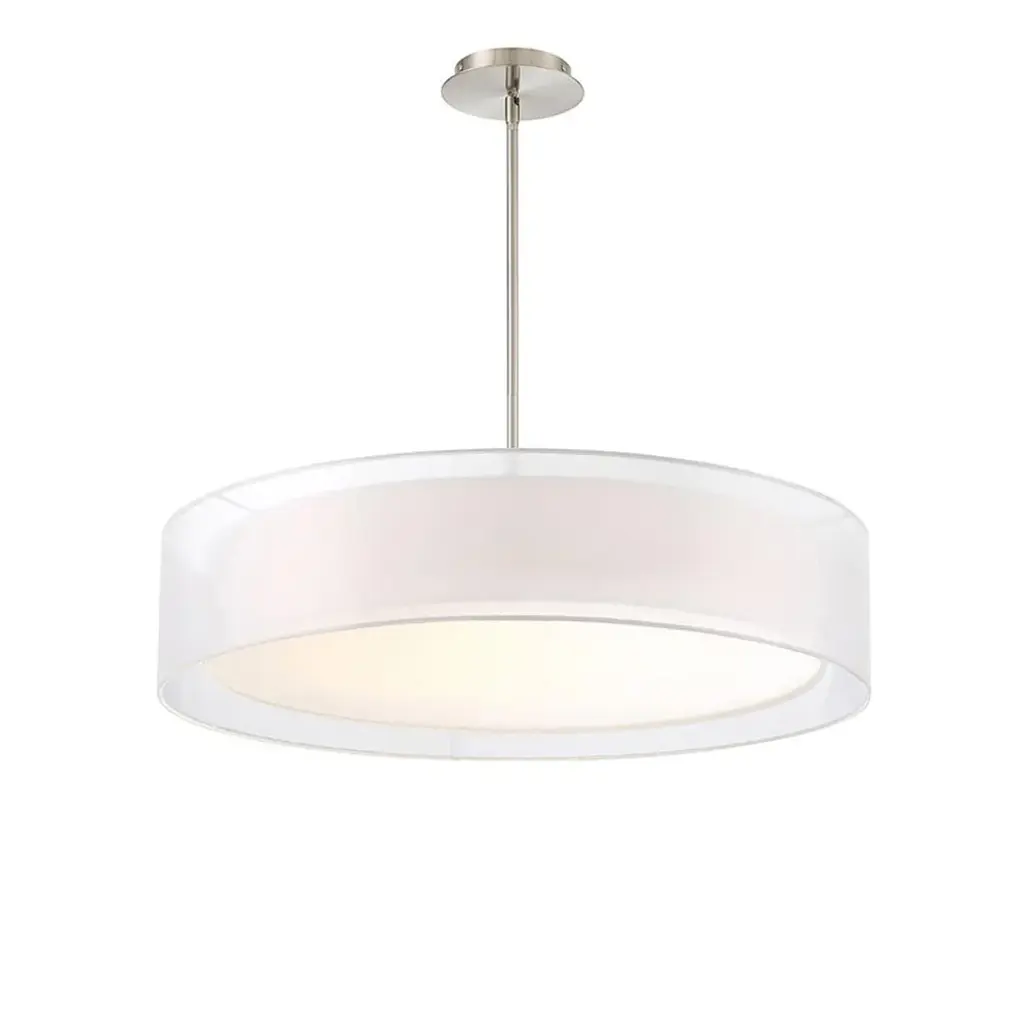 Its diaphanous shade imparts a dreamy feel to any space, and when the Metropolis LED Pendant Light from Modern Forms is illuminated by state-of-the-art LED modules it casts consistent light with enduring brilliance. Metropolis looks particularly stunning in urban décor or anywhere with a strong Scandinavian or Mid-Century styled aesthetic. Dimming capabilities allow adjustability while the chrome canopy adds a beautiful finishing touch.Highlights High powered LED technology offers up to 50,000 hours of energy-efficient lighting Smooth and continuous dimming with an electronic low voltage (ELV) dimmer Damp rated for use in bathrooms and covered outdoor spaces Title 24