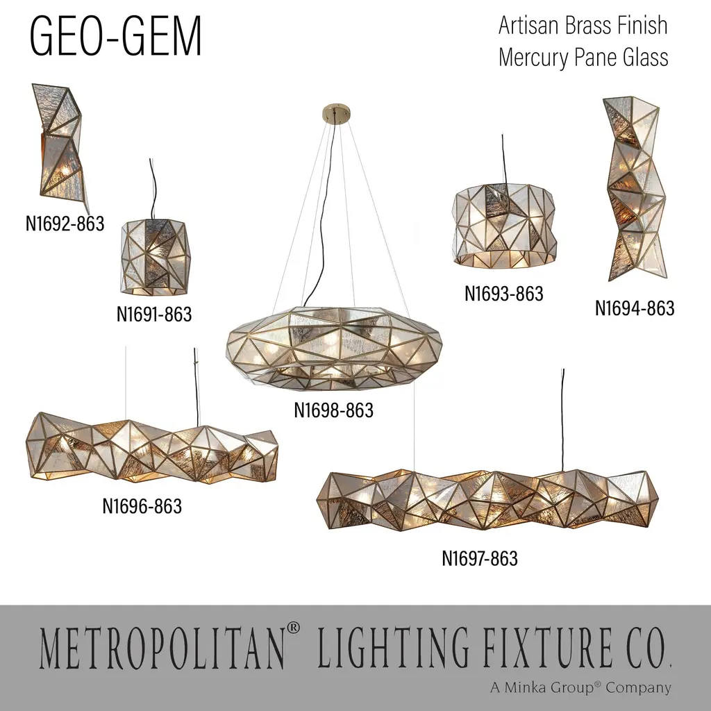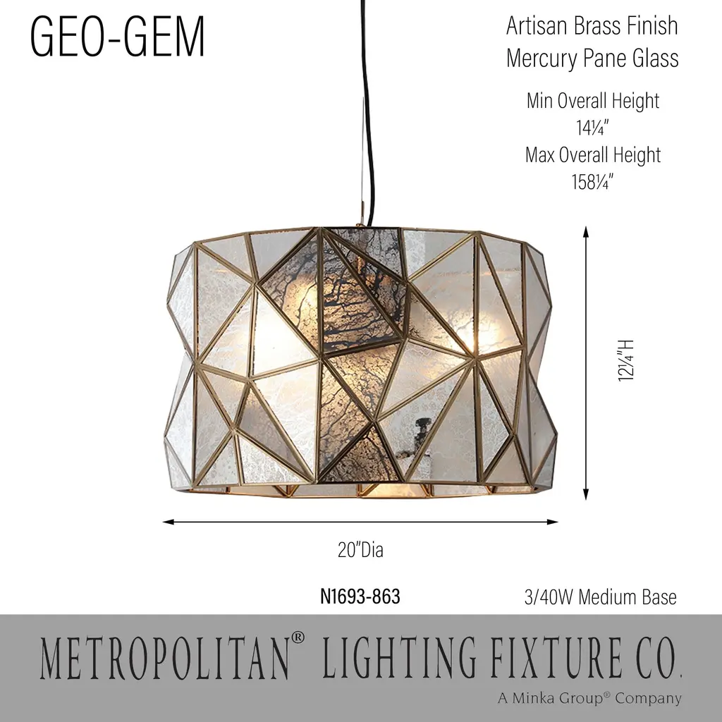 Metropolitan N1693 Geo-Gem 3 Light 20" Wide Pendant - Artisan Brass