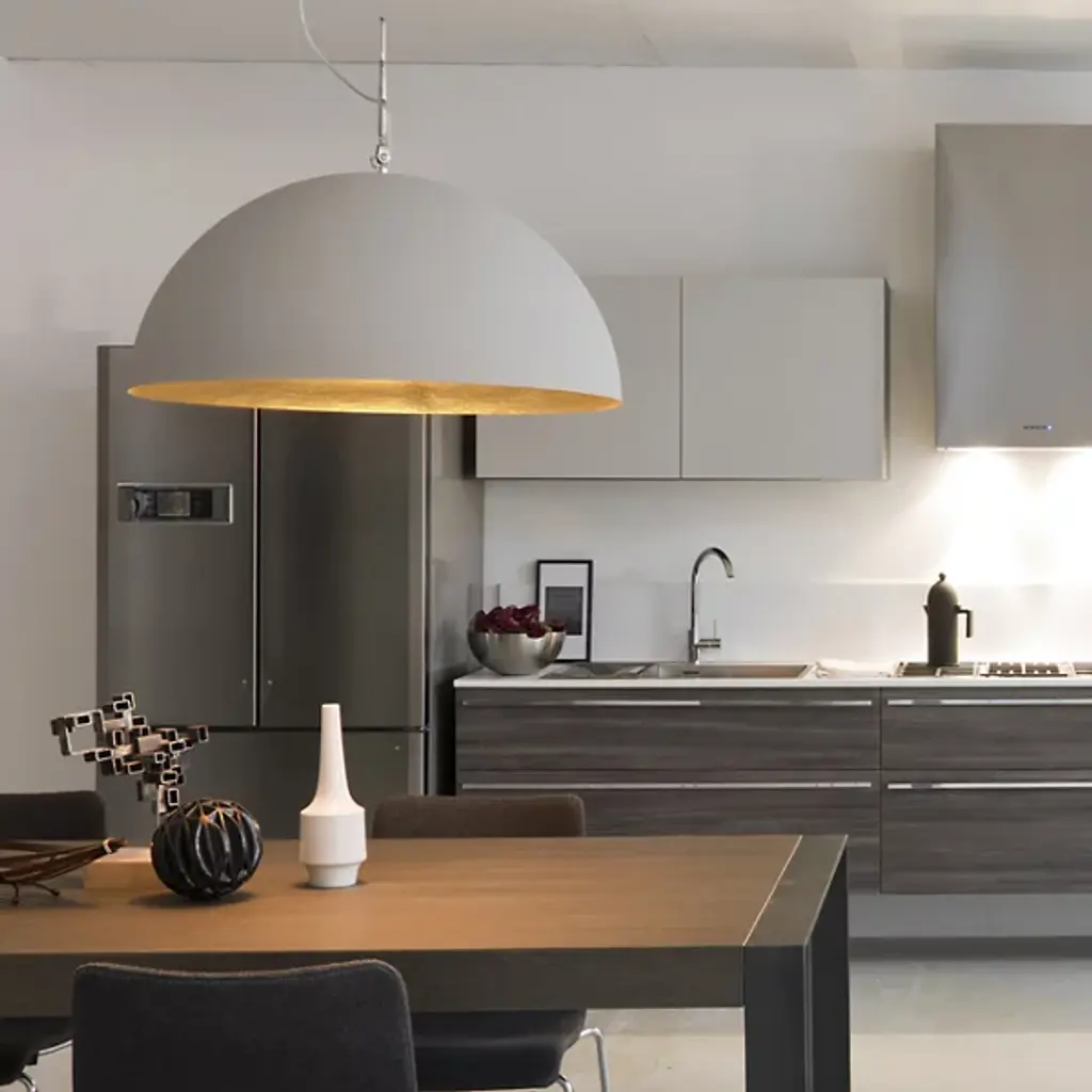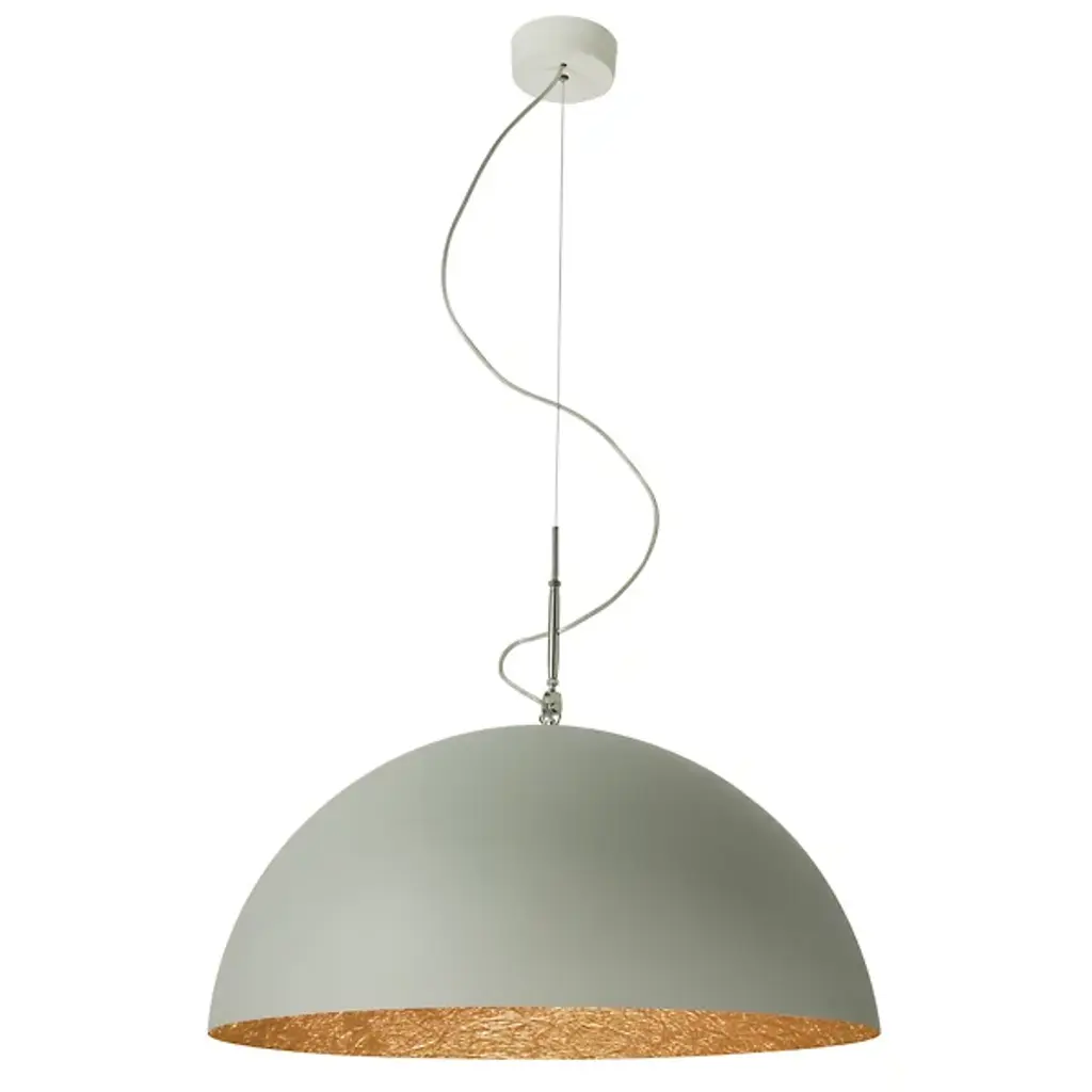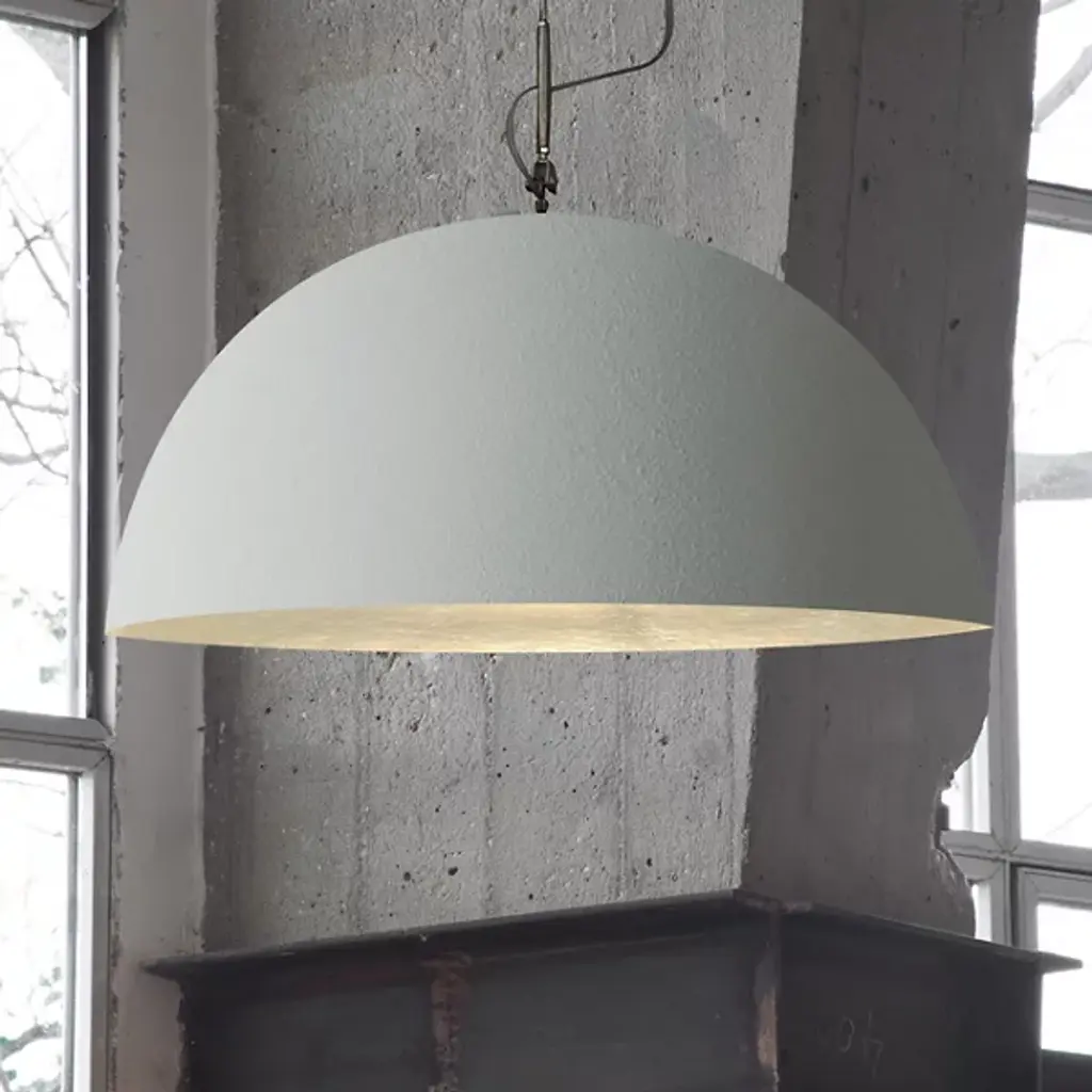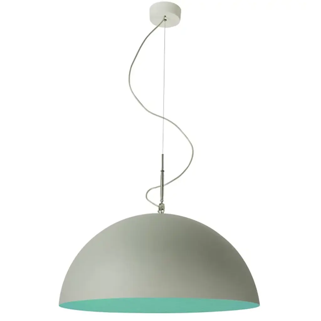 The Mezza Luna Cemento Pendant from In-Es Art Design brings an intimate and encompassing design and light to a space. Made by hand, this fixture’s half-circle shade drops from a slender cord to arch widely over its concealed light source. Its cement-painted exterior resembles a half-moon and infuses the room with an organic and industrial air. A colored interior brings contrast, while its proprietary Nebulite material displays a textural, swirling effect.