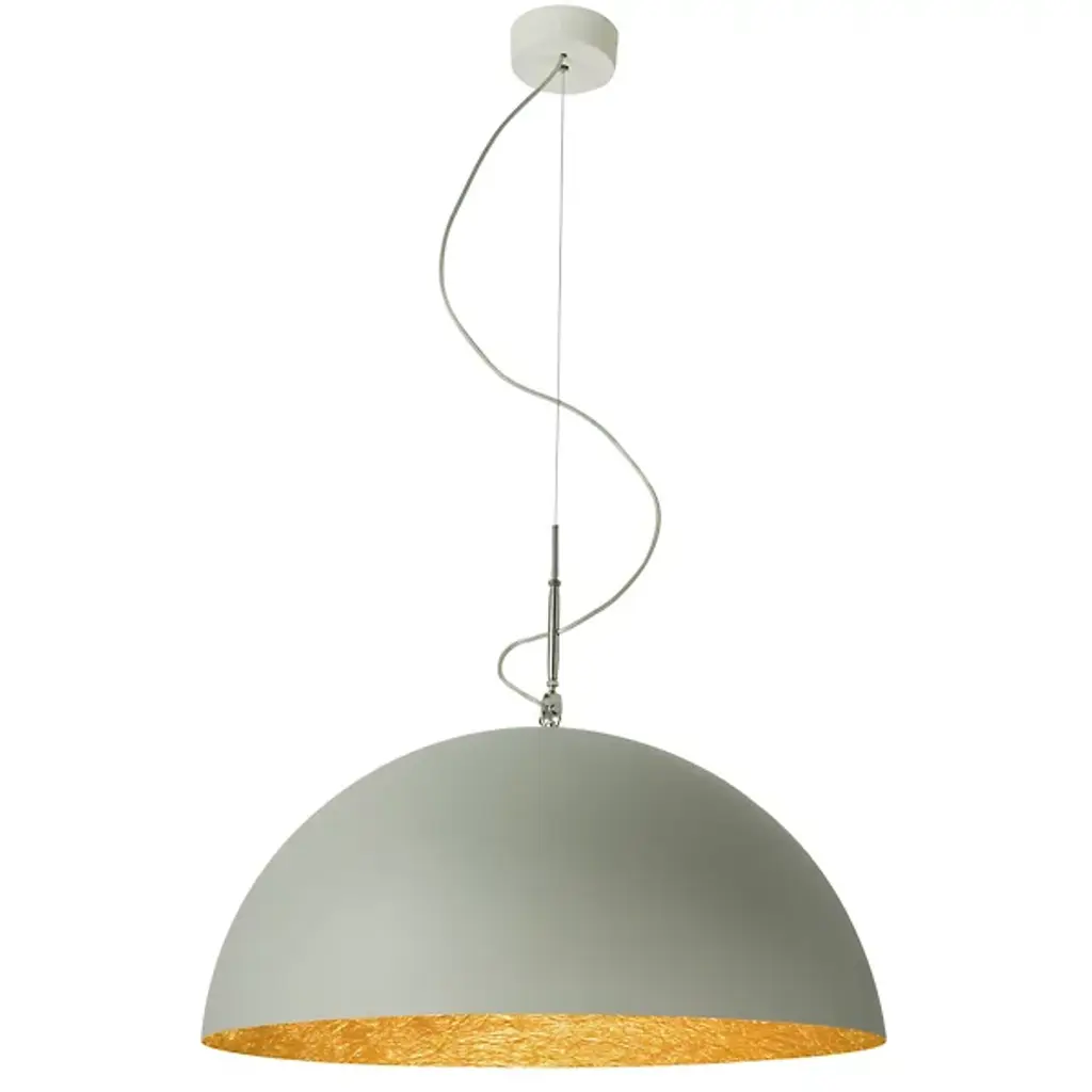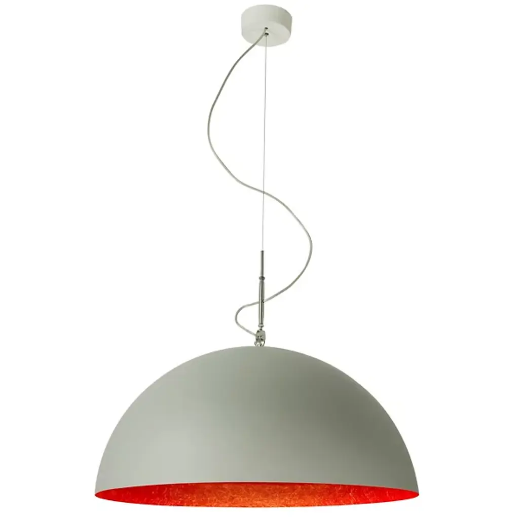 The Mezza Luna Cemento Pendant from In-Es Art Design brings an intimate and encompassing design and light to a space. Made by hand, this fixture’s half-circle shade drops from a slender cord to arch widely over its concealed light source. Its cement-painted exterior resembles a half-moon and infuses the room with an organic and industrial air. A colored interior brings contrast, while its proprietary Nebulite material displays a textural, swirling effect.