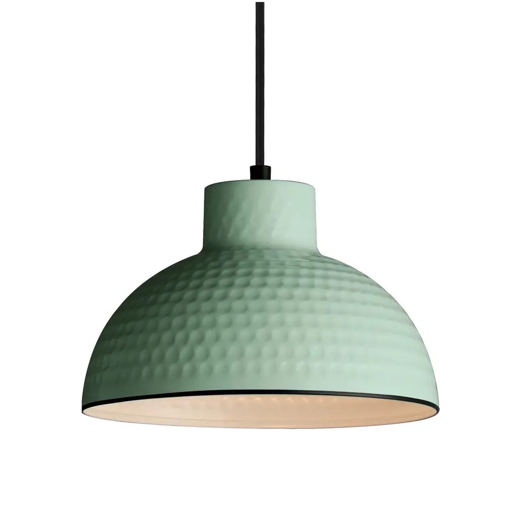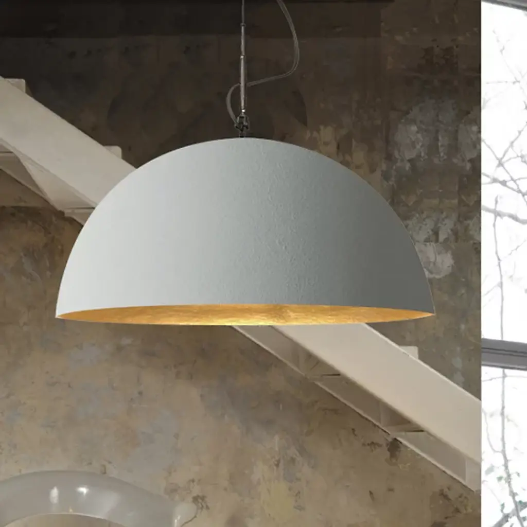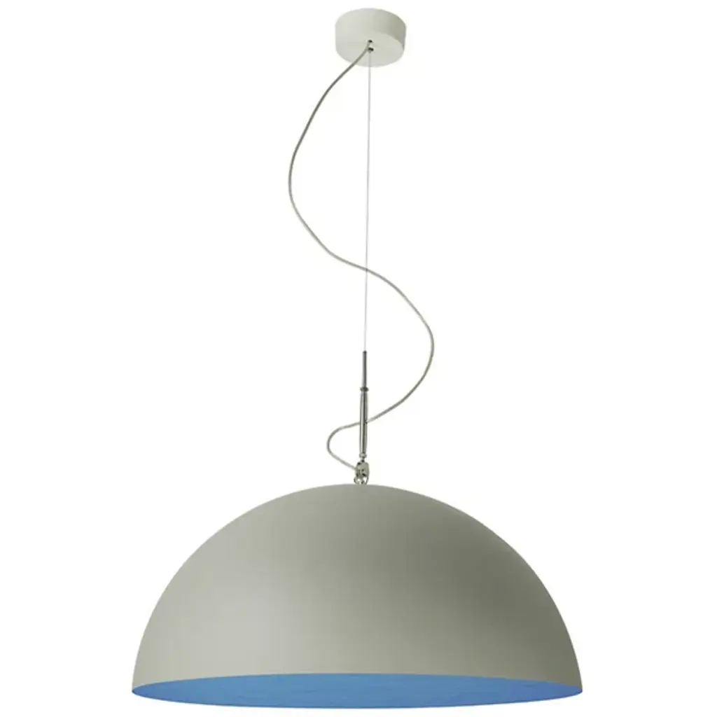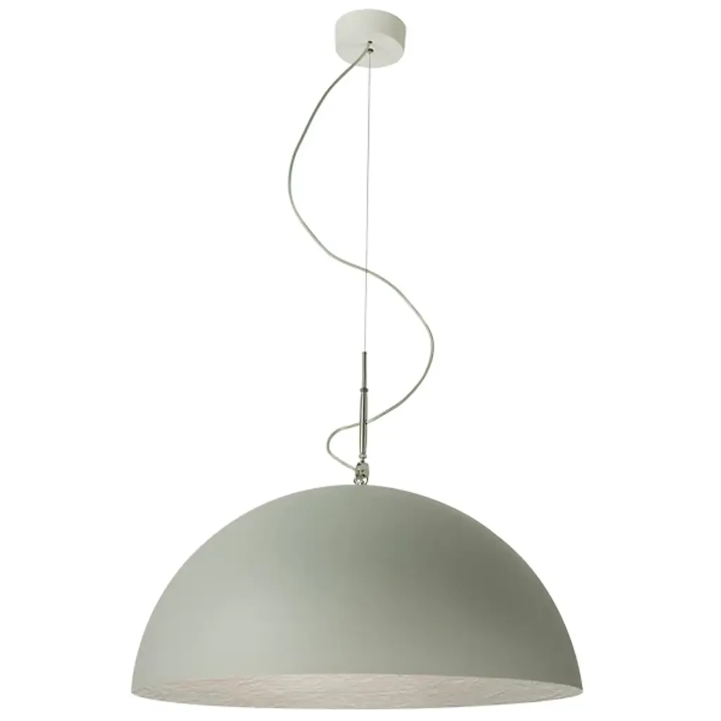 The Mezza Luna Cemento Pendant from In-Es Art Design brings an intimate and encompassing design and light to a space. Made by hand, this fixture’s half-circle shade drops from a slender cord to arch widely over its concealed light source. Its cement-painted exterior resembles a half-moon and infuses the room with an organic and industrial air. A colored interior brings contrast, while its proprietary Nebulite material displays a textural, swirling effect.