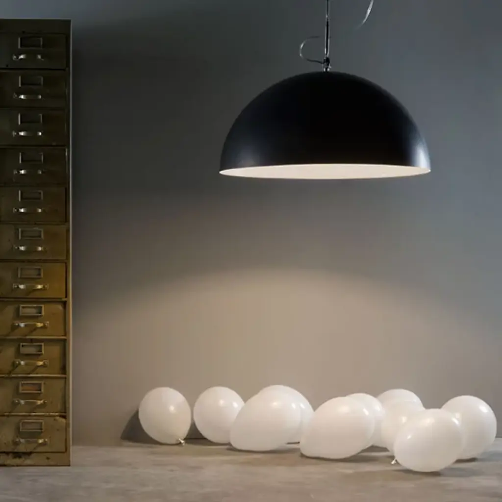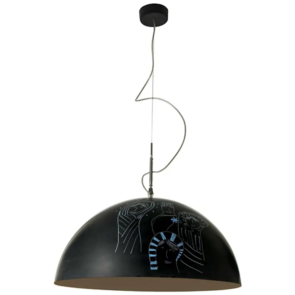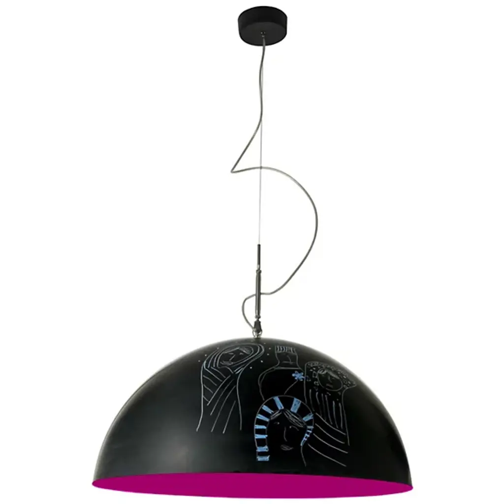 The Mezza Luna Lavagna Pendant from In-Es Art Design creates an intimate and alluring downward glow while displaying a clean silhouette for the modern home. Made by hand, this fixture drops from a slender cord to a dome-shaped shade complete with a blackboard paint finish that allows it to be decorated with chalk. A colored interior brings contrast, while its proprietary Nebulite material brings a textural, swirling effect to its otherwise minimal design.