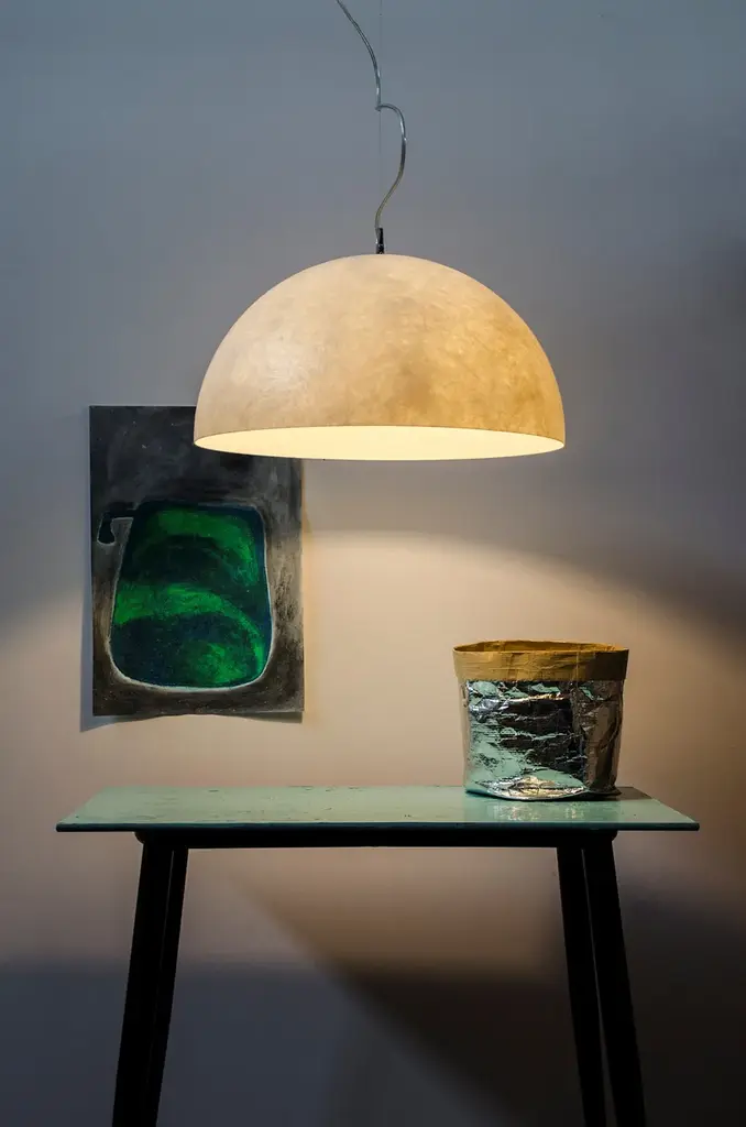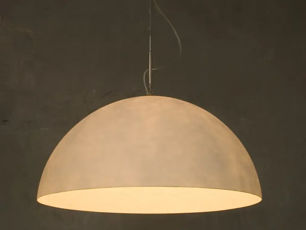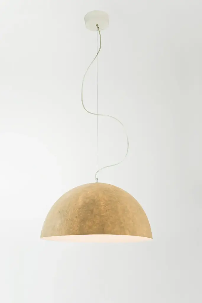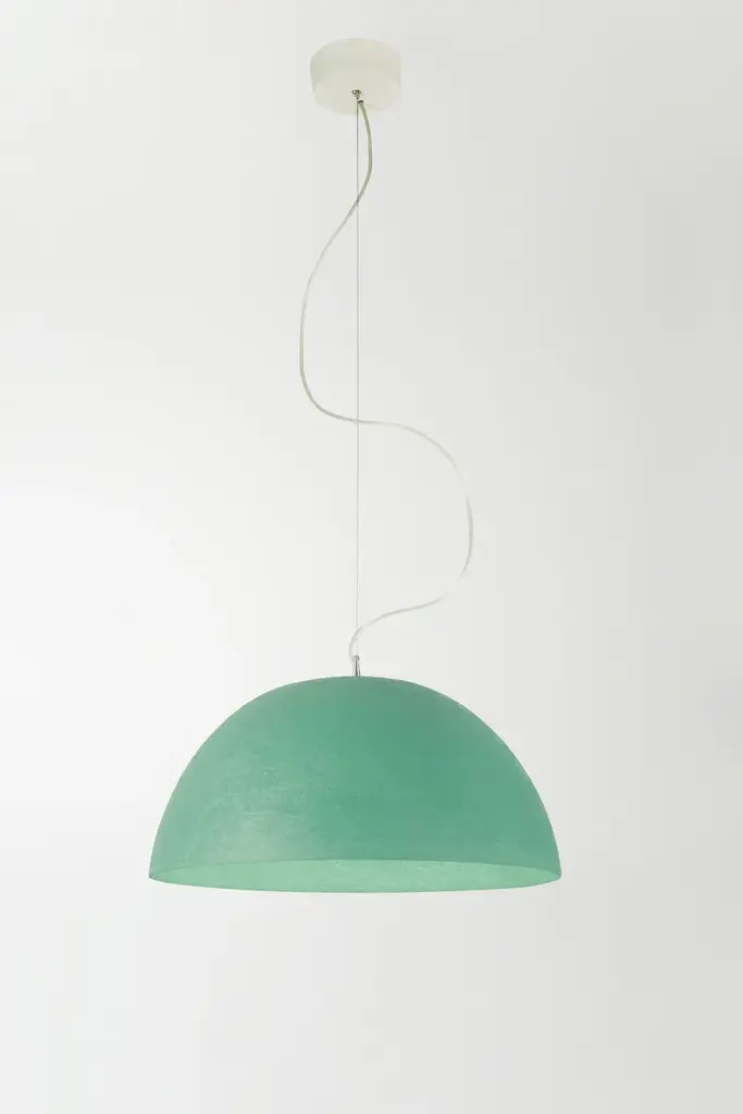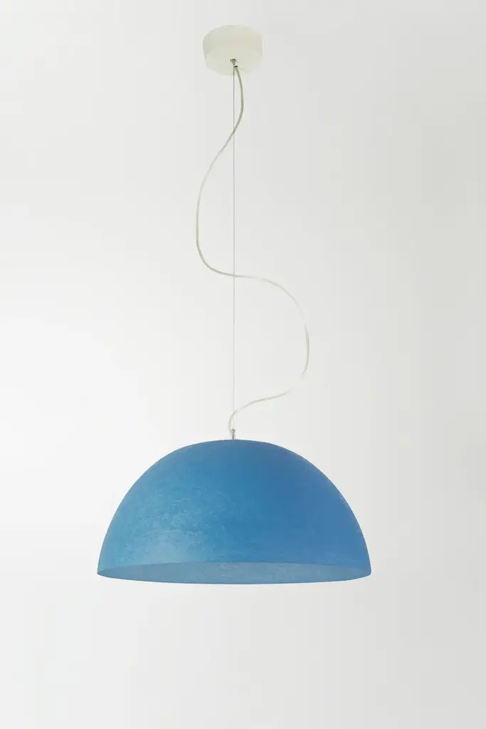 Mezza luna is a LED suspension lamp made of nebulite.Technical information:Color variants: white, red, orange, turquoise, magenta, blueMaterials: laprene, steel, nebulite (fiberglass)Light source: 230V / E27 max 100w recommended LED 13wBulb not included in the price.The “Mezza luna” pendant, with a pure and evocative design, it’s realized in Nebulite®. It comes in a monochromatic and transparent version or various color combinations with a outer matt and smooth finish, creating an interesting contrast between the outside and the inside of the lamp. Luna (moon) collection is inspired by the moon’s mysteries. it is constructed of Nebulite, a specially developed material made of resins and fibers, that mimics the uneven, softly luminescent qualities of the moon’s surface.