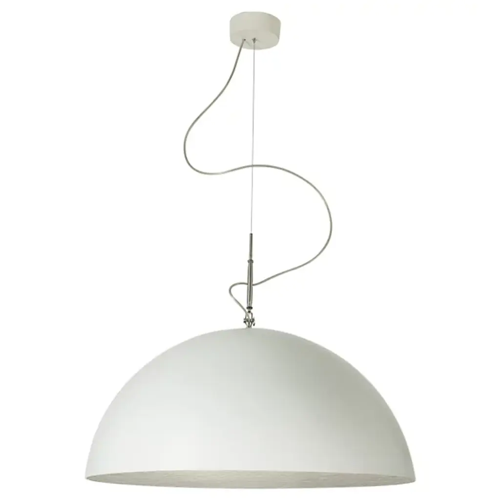 The Mezza Luna Pendant by In-Es Art Design is part of a collection that was inspired by the moon. The name is Italian for half, and the dome-shaped shade of the Mezza Luna Pendant creates the same silhouette that is visible when only half the moon is out. Made from a material that reproduces the play between light and shadow found along the lunar surface, Nebulite® is a combination of resin and fiberglass. A captivating addition to spaces, this piece has a simple form that looks magical when illuminated.