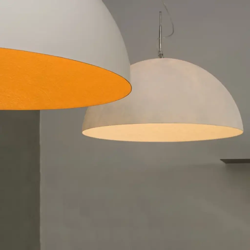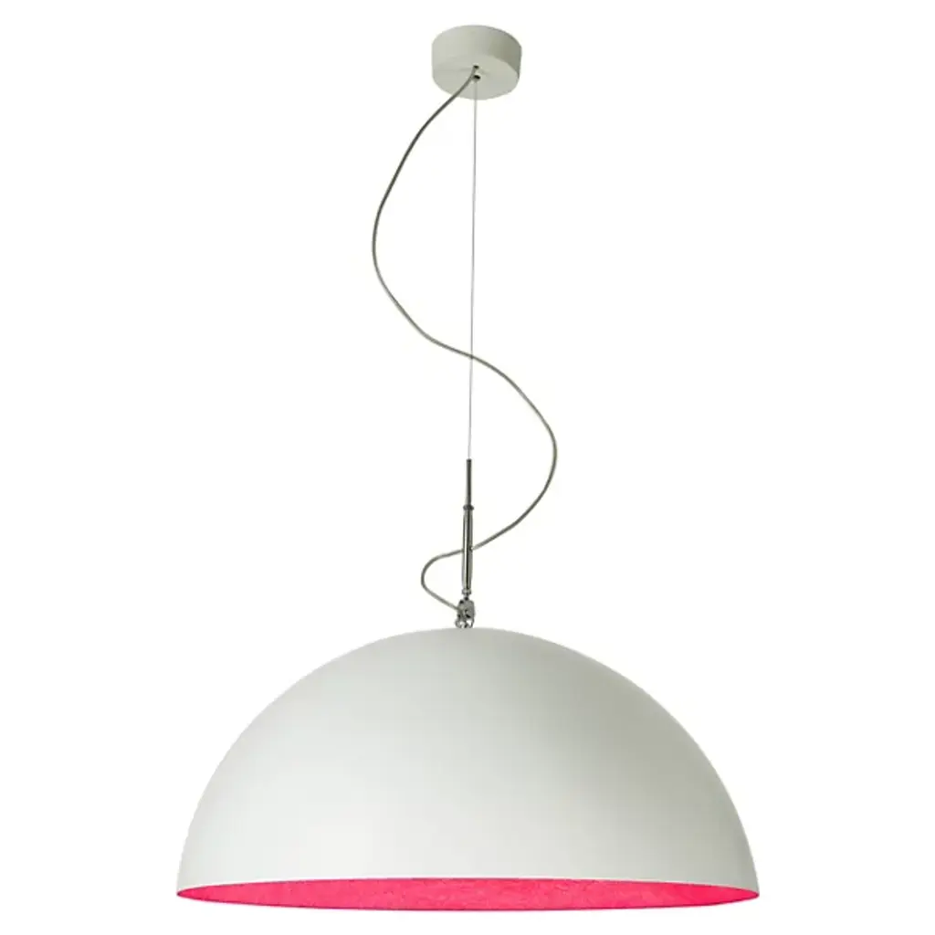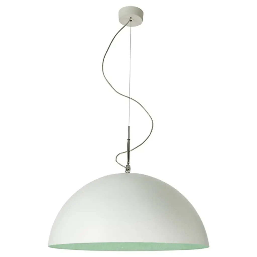 The Mezza Luna Pendant by In-Es Art Design is part of a collection that was inspired by the moon. The name is Italian for half, and the dome-shaped shade of the Mezza Luna Pendant creates the same silhouette that is visible when only half the moon is out. Made from a material that reproduces the play between light and shadow found along the lunar surface, Nebulite® is a combination of resin and fiberglass. A captivating addition to spaces, this piece has a simple form that looks magical when illuminated.
