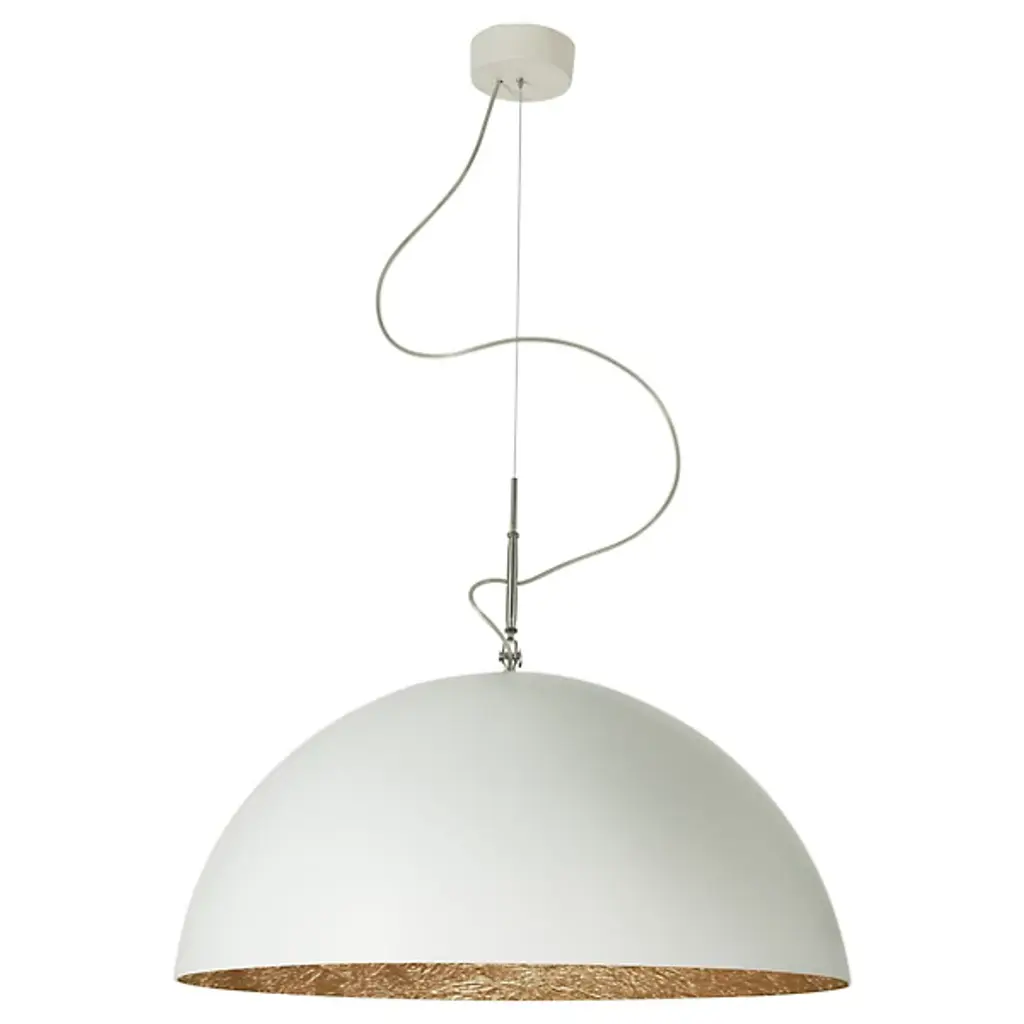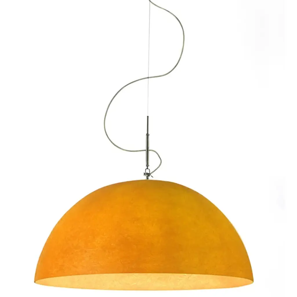 The Mezza Luna Pendant by In-Es Art Design is part of a collection that was inspired by the moon. The name is Italian for half, and the dome-shaped shade of the Mezza Luna Pendant creates the same silhouette that is visible when only half the moon is out. Made from a material that reproduces the play between light and shadow found along the lunar surface, Nebulite® is a combination of resin and fiberglass. A captivating addition to spaces, this piece has a simple form that looks magical when illuminated.