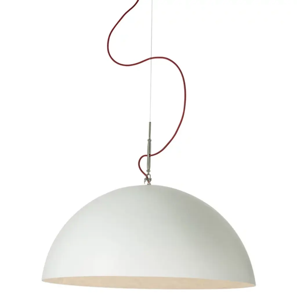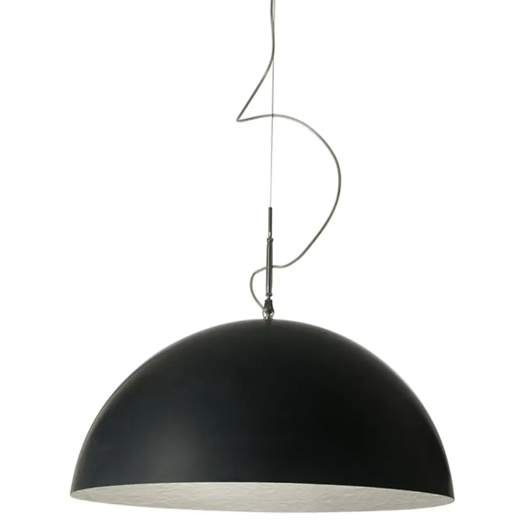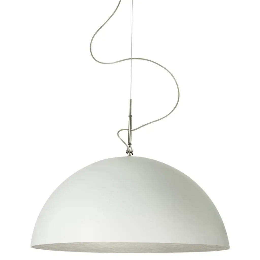 The Mezza Luna Pendant by In-Es Art Design is part of a collection that was inspired by the moon. The name is Italian for half, and the dome-shaped shade of the Mezza Luna Pendant creates the same silhouette that is visible when only half the moon is out. Made from a material that reproduces the play between light and shadow found along the lunar surface, Nebulite® is a combination of resin and fiberglass. A captivating addition to spaces, this piece has a simple form that looks magical when illuminated.