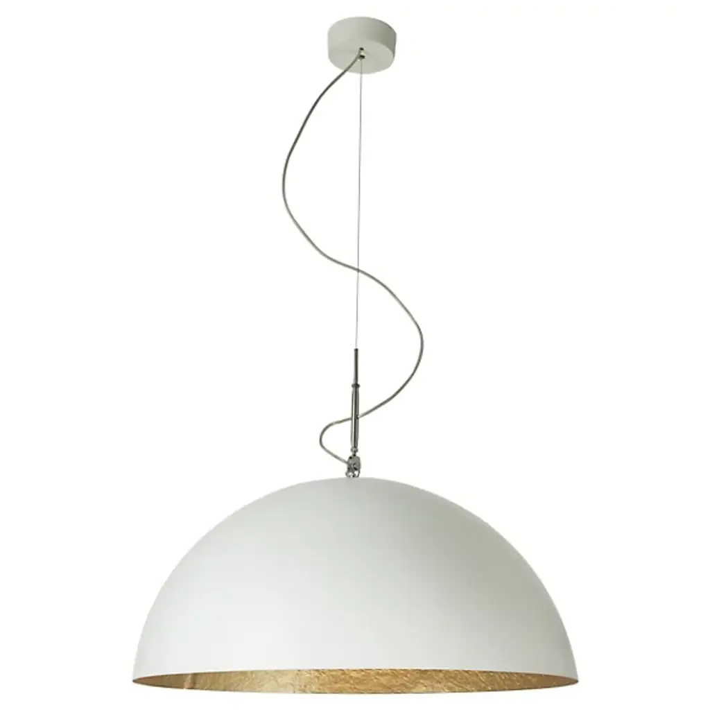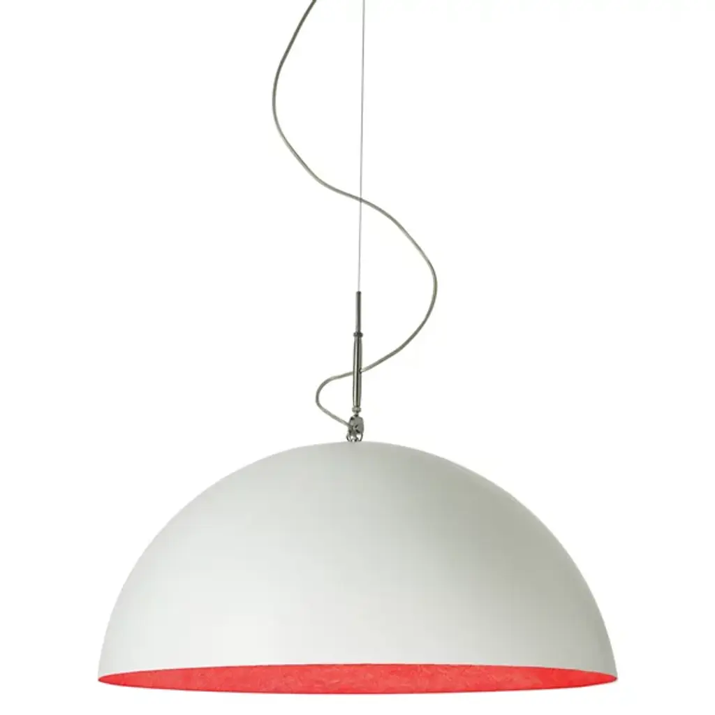 The Mezza Luna Pendant by In-Es Art Design is part of a collection that was inspired by the moon. The name is Italian for half, and the dome-shaped shade of the Mezza Luna Pendant creates the same silhouette that is visible when only half the moon is out. Made from a material that reproduces the play between light and shadow found along the lunar surface, Nebulite® is a combination of resin and fiberglass. A captivating addition to spaces, this piece has a simple form that looks magical when illuminated.
