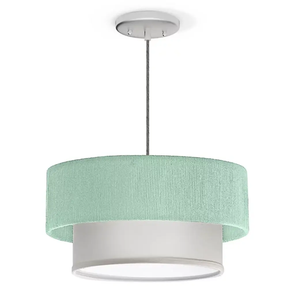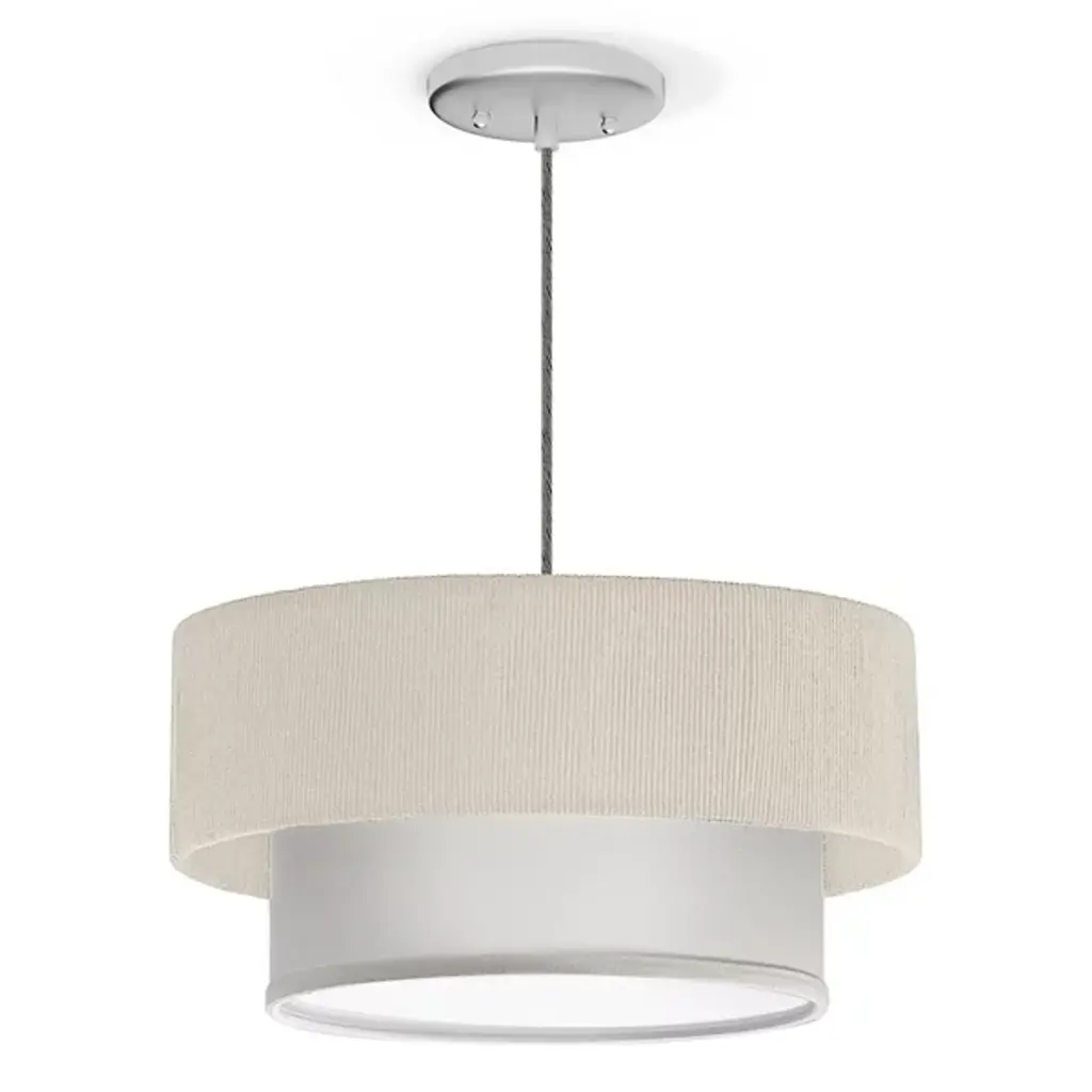 The Mia Drum Pendant from Seascape Lamps plays with layering in an unexpected way. A handwoven cotton thread shade sits above a linen drum, creating a stepped effect when viewed from below. Each thread in the upper portion is hand-dyed, resulting in a rich texture that filters through to the lower section. A bottom diffuser ensures even light distribution below. This pendant works particularly well above dining tables, in entryways, or anywhere the two-tiered construction can be appreciated from multiple angles. Its adjustable brightness lets you match the output to different activities throughout the day.