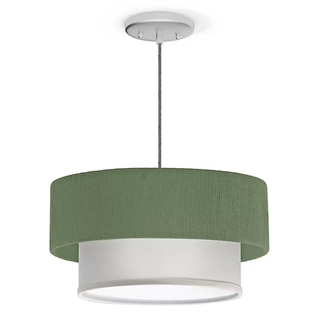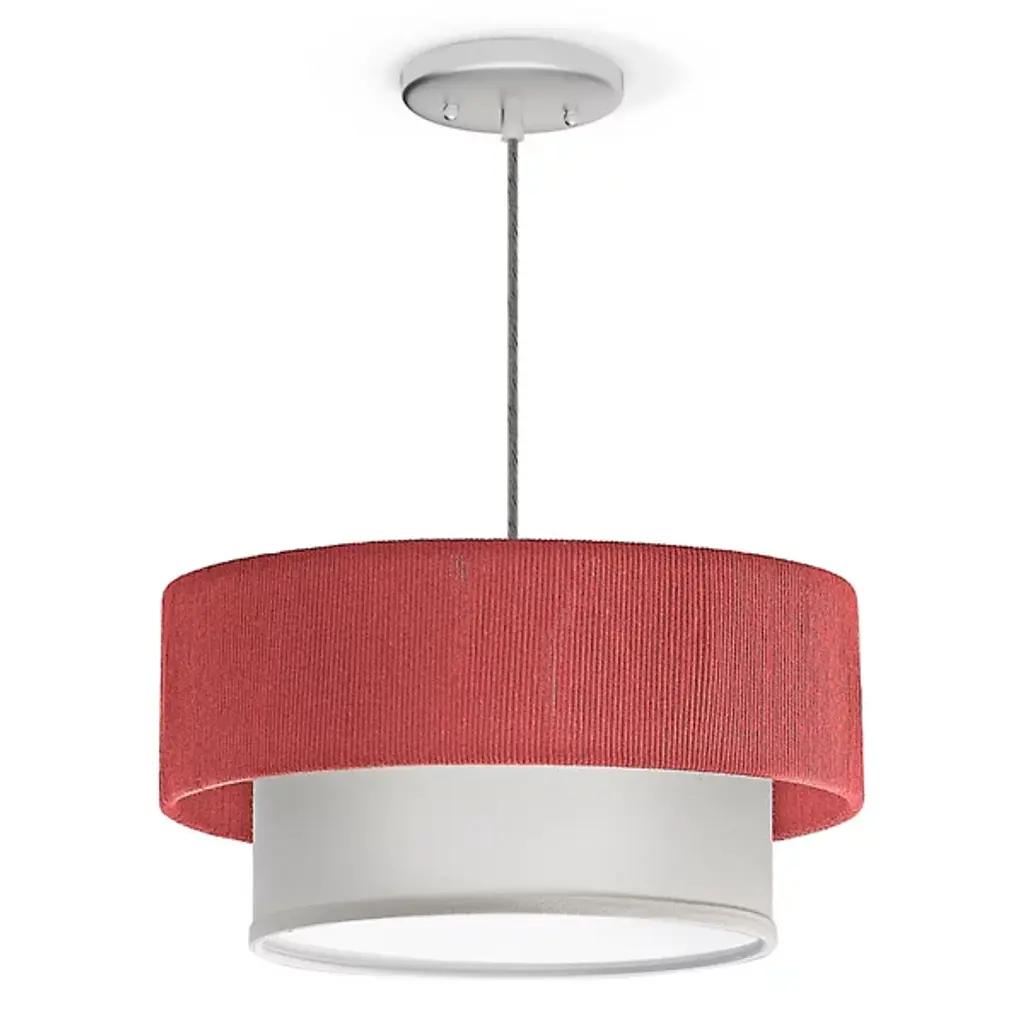 The Mia Drum Pendant from Seascape Lamps plays with layering in an unexpected way. A handwoven cotton thread shade sits above a linen drum, creating a stepped effect when viewed from below. Each thread in the upper portion is hand-dyed, resulting in a rich texture that filters through to the lower section. A bottom diffuser ensures even light distribution below. This pendant works particularly well above dining tables, in entryways, or anywhere the two-tiered construction can be appreciated from multiple angles. Its adjustable brightness lets you match the output to different activities throughout the day.