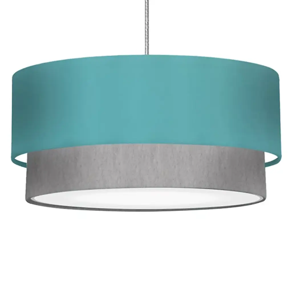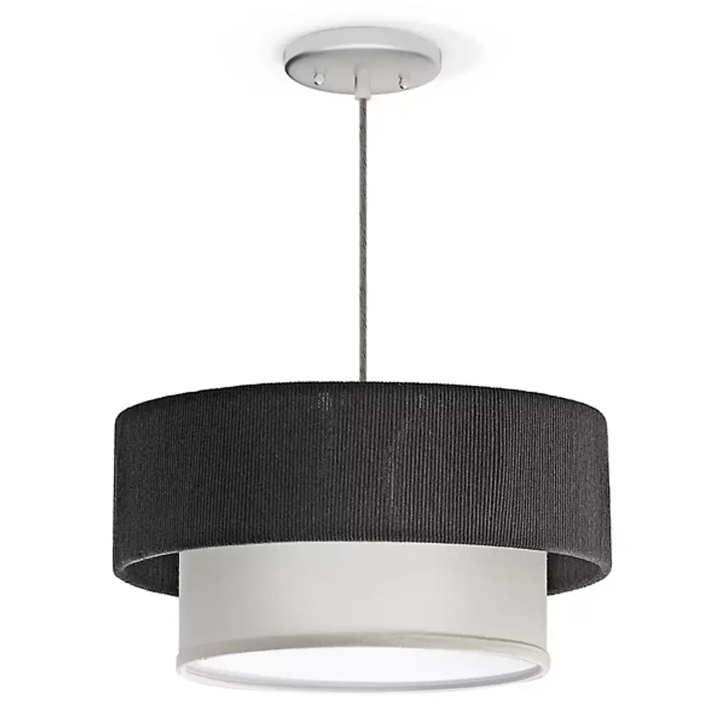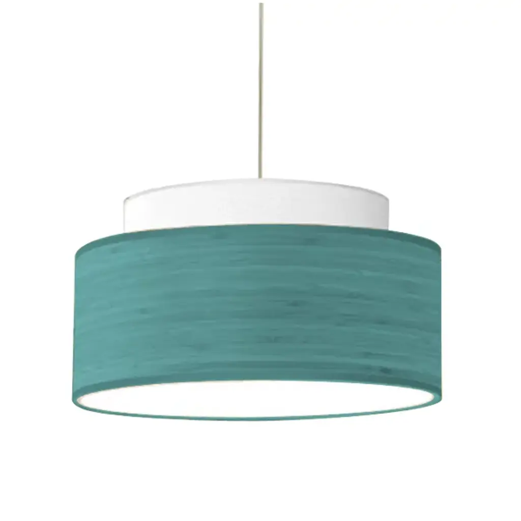 The Mia Drum Pendant from Seascape Lamps plays with layering in an unexpected way. A handwoven cotton thread shade sits above a linen drum, creating a stepped effect when viewed from below. Each thread in the upper portion is hand-dyed, resulting in a rich texture that filters through to the lower section. A bottom diffuser ensures even light distribution below. This pendant works particularly well above dining tables, in entryways, or anywhere the two-tiered construction can be appreciated from multiple angles. Its adjustable brightness lets you match the output to different activities throughout the day.