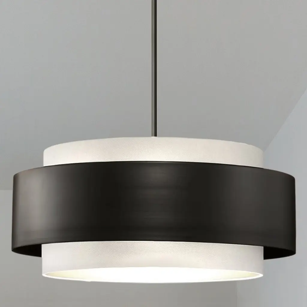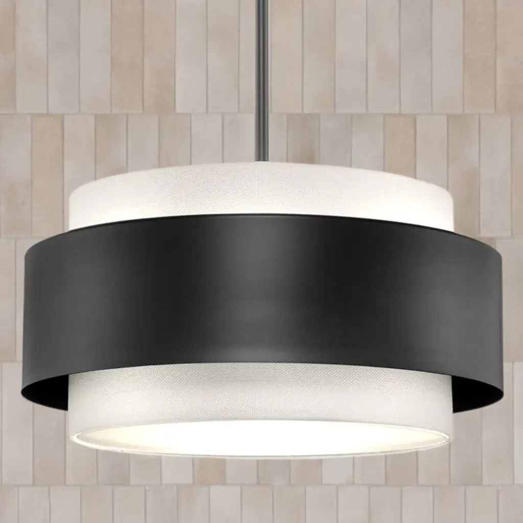 The Mia Drum Pendant from Seascape Lamps plays with layering in an unexpected way. A handwoven cotton thread shade sits above a linen drum, creating a stepped effect when viewed from below. Each thread in the upper portion is hand-dyed, resulting in a rich texture that filters through to the lower section. A bottom diffuser ensures even light distribution below. This pendant works particularly well above dining tables, in entryways, or anywhere the two-tiered construction can be appreciated from multiple angles. Its adjustable brightness lets you match the output to different activities throughout the day.