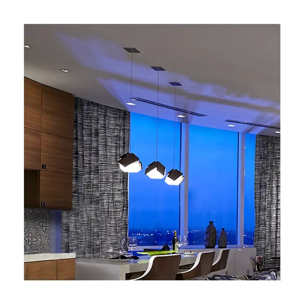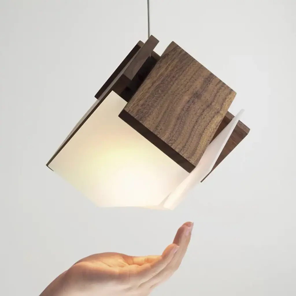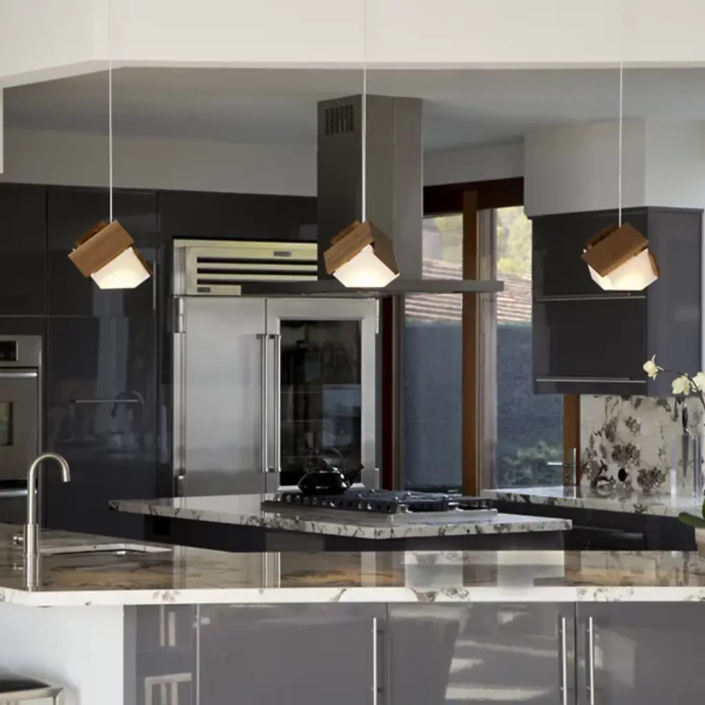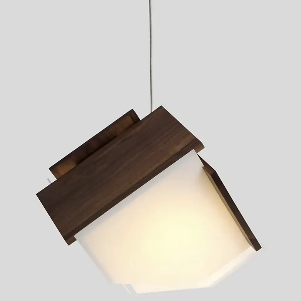 The Cerno Mica LED Accent Pendant is a deconstructed cube of energy-efficient light. Ambient LED light filters through the diffuser, enhancing the natural grain of the solid wood accents. The wooden components intersect the diffuser, allowing light to gently peak through the openings, creating an asymmetrical and complementary composition of natural and technical elements. The two canopy options provide flexibility when installing the Mica—both requiring space for the included LED driver. Use the extended canopy option when adequate junction box space is not available. The low canopy option still requires space in the junction box for the included LED driver, but is a more standard, slimmer option.