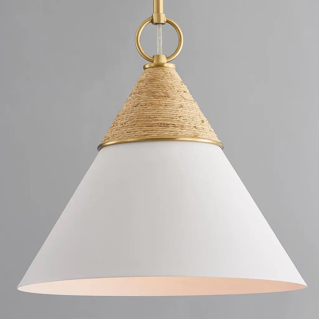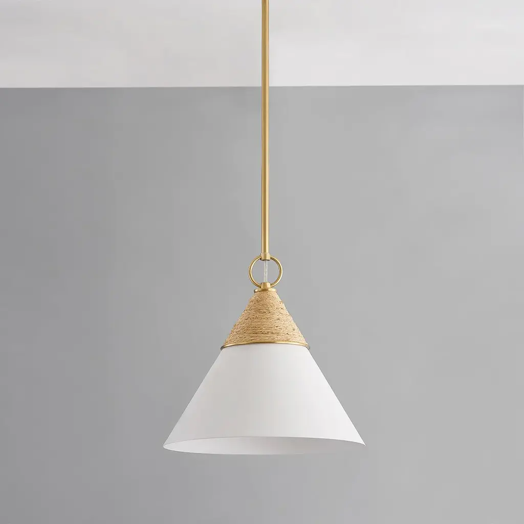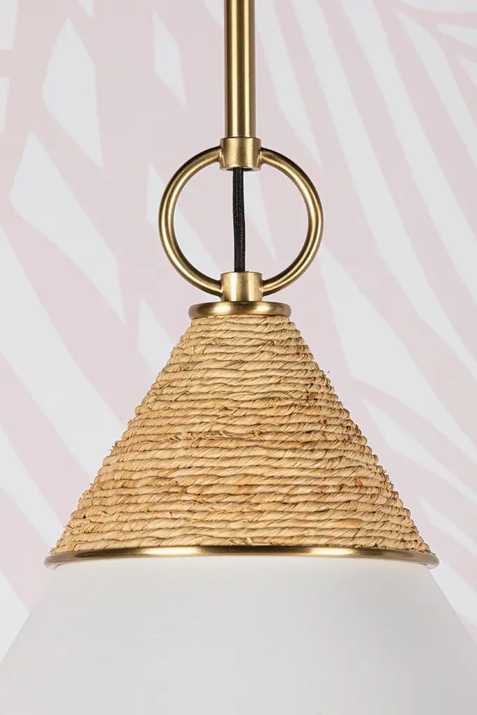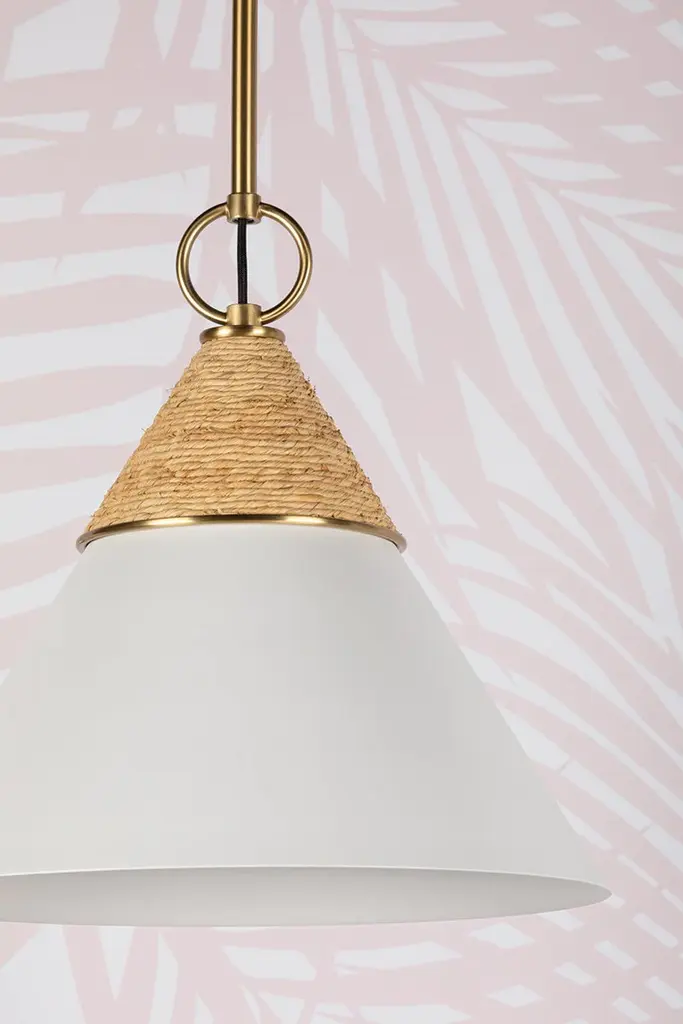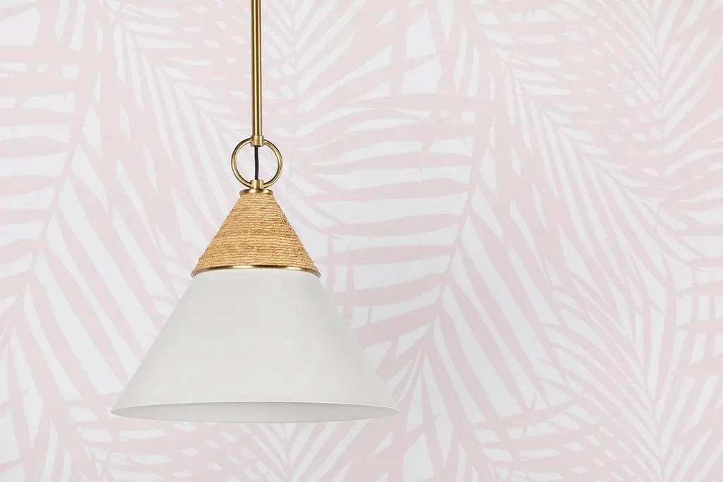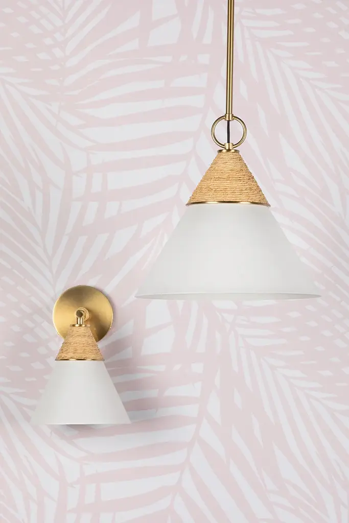 Balancing coastal charm with quiet luxury, Mica emits a gentle wash of light in kitchens and powder rooms. Its sleek silhouette is accented by wrapped raffia, an organic touch that makes this fixture feel approachable. Mica is available as a pendant in two sizes, or a wall sconce with one or two shades. Part of our Megan Molten x Mitzi Tastemakers collection.