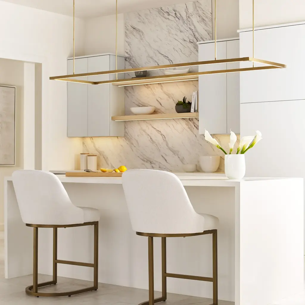 Introducing the ultimate in symmetry and elegance with the Mick De Giulio Stagger Halo LED Linear Pendant Light from Visual Comfort & Co. The grand scale and rectangular frame add visual texture and energy to any space, while the slender shape delicately illuminates, complementing the overall architecture. LED light and modern finishes elevate your environment in style. Highlights