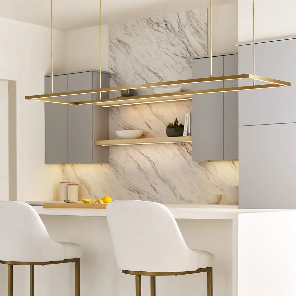 Introducing the ultimate in symmetry and elegance with the Mick De Giulio Stagger Halo LED Linear Pendant Light from Visual Comfort & Co. The grand scale and rectangular frame add visual texture and energy to any space, while the slender shape delicately illuminates, complementing the overall architecture. LED light and modern finishes elevate your environment in style. Highlights