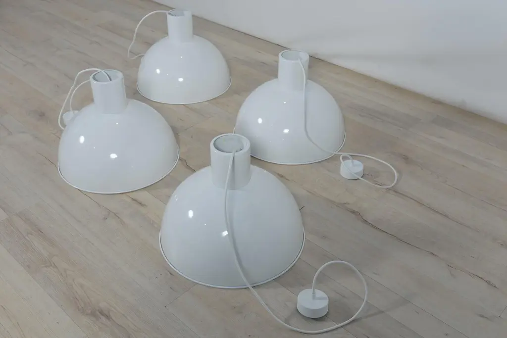 Hanging lamp Bunker designed by Jo Hammerborg for the Danish manufacture Fog & Mørup in Denmark in the 70s. The lamp has been completely renovated. The lamps have been cleaned and repainted. Perfect lamp condition. The cabling has been replaced with new ones. The lamp is fully operational. I have official proof of authenticity such as vintage catalogs, designer records, or other literature sources and take full responsibility for any authenticity issues arising from misattribution, European Plug (up to 250V).The wiring of this item may be original and might need replacement, if not specified otherwise.