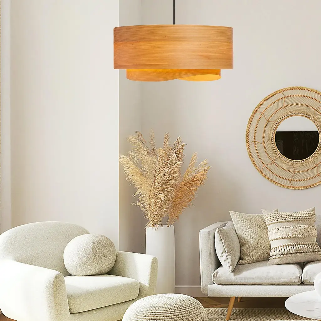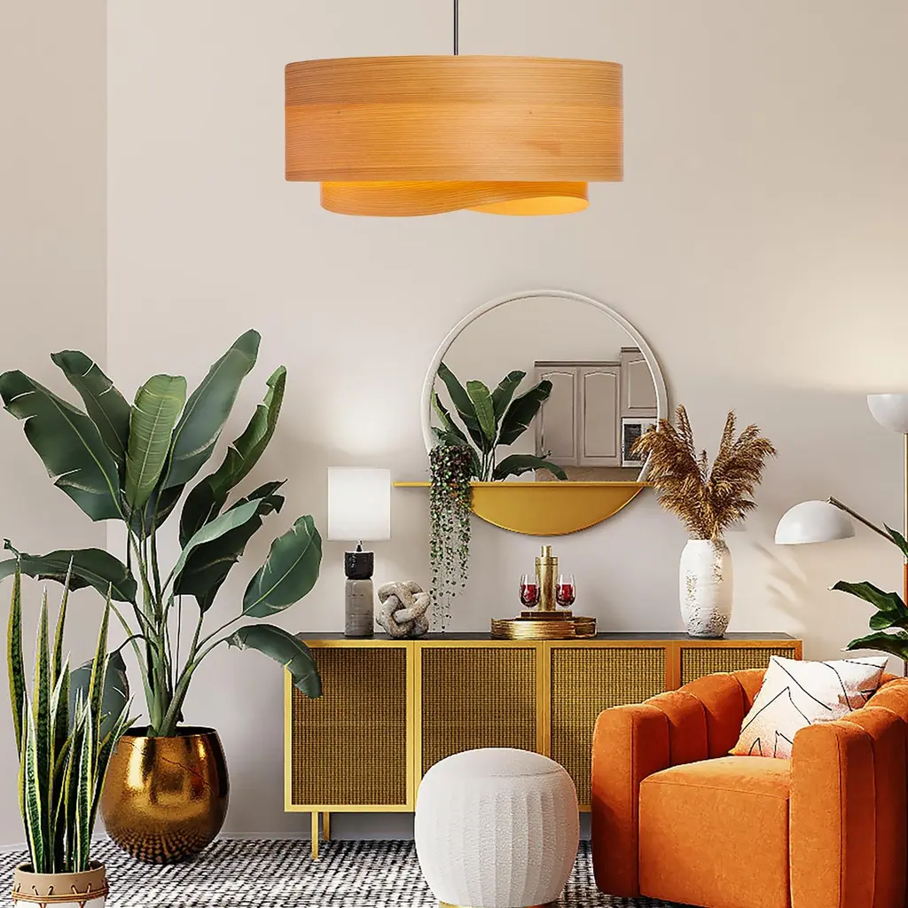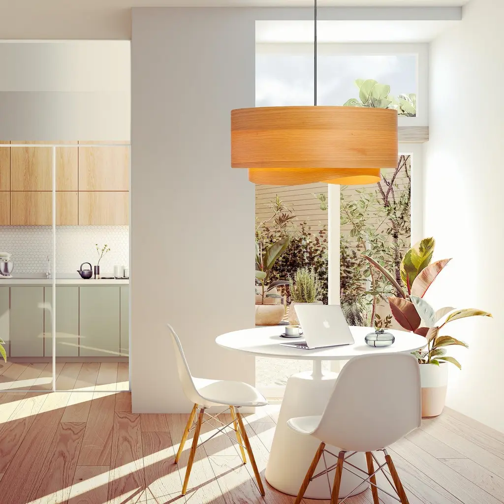 This limited-edition pendant light brings the natural beauty of cypress veneer into your home, featuring unique wood grain patterns and warm, rich tones. Inspired by Danish modern design, its minimalist silhouette creates an inviting atmosphere, ideal for dining rooms, entryways, or conference rooms. The translucent veneer casts a warm glow, adding elegance and sophistication to any space. A perfect blend of nature and style, this handcrafted light is a distinctive addition to your décor.Includes:• 10' White or Black Cord & Canopy Kit • Two LED dimmable bulbs equivalent to 100 watts eachUpgrades:• Custom length stem/down rod and canopy kit in the following options: polished nickel, brushed brass, matt black or white.