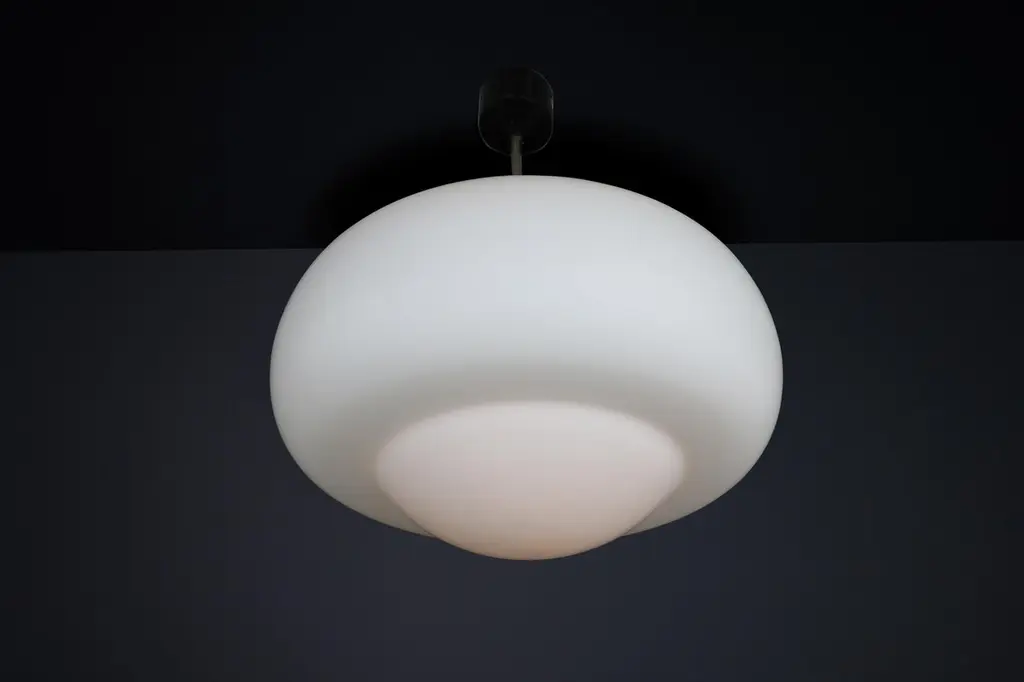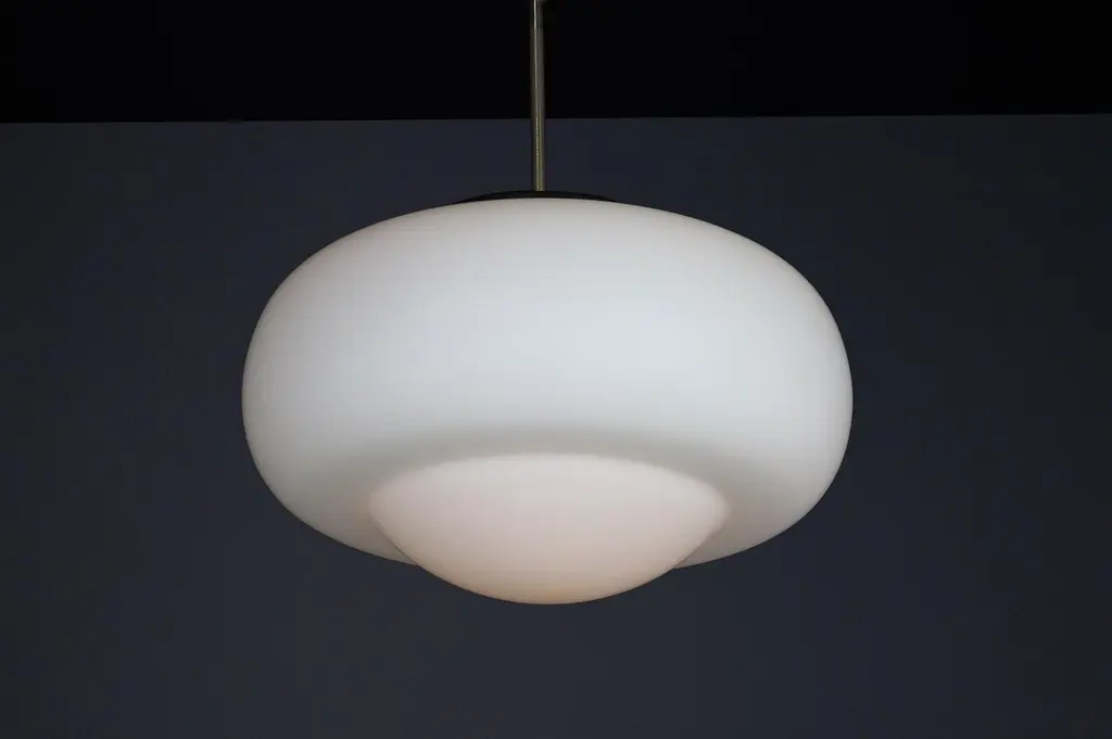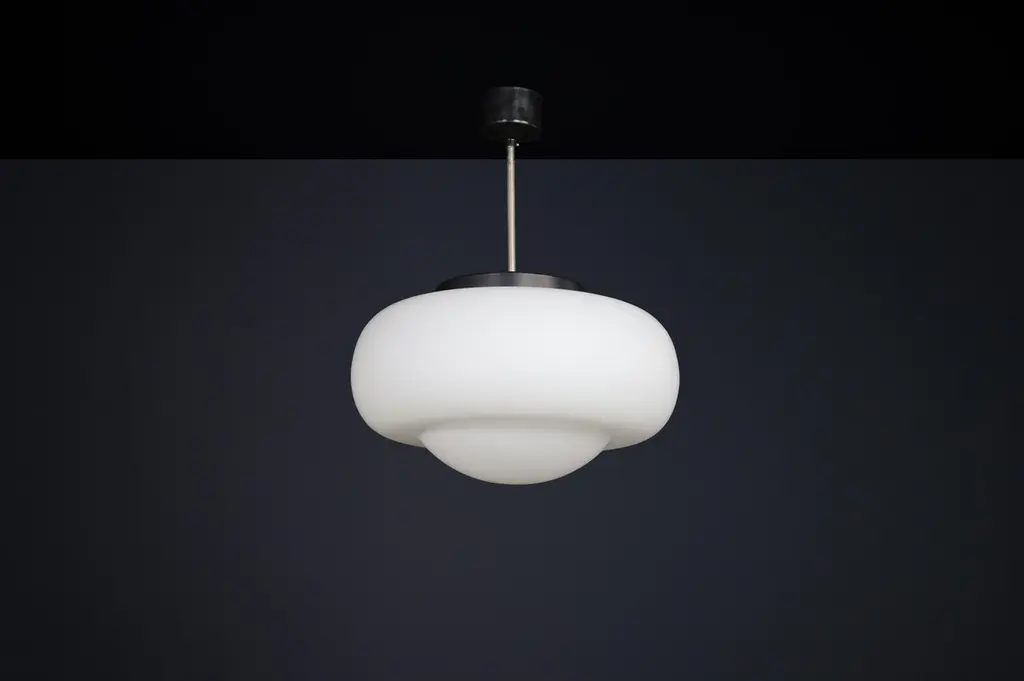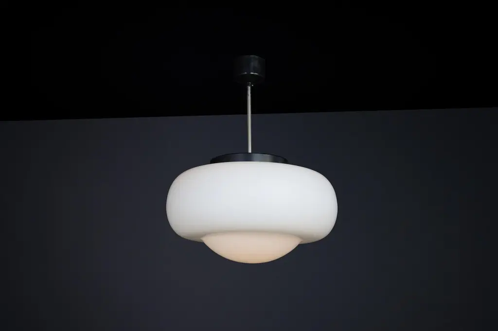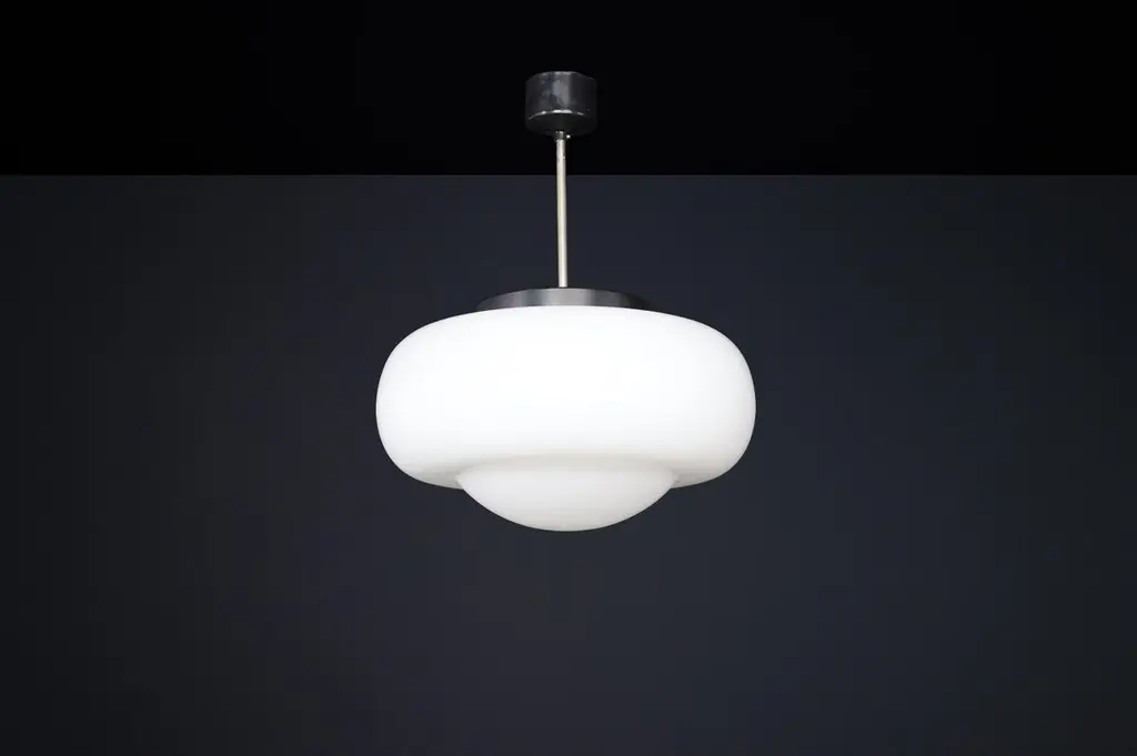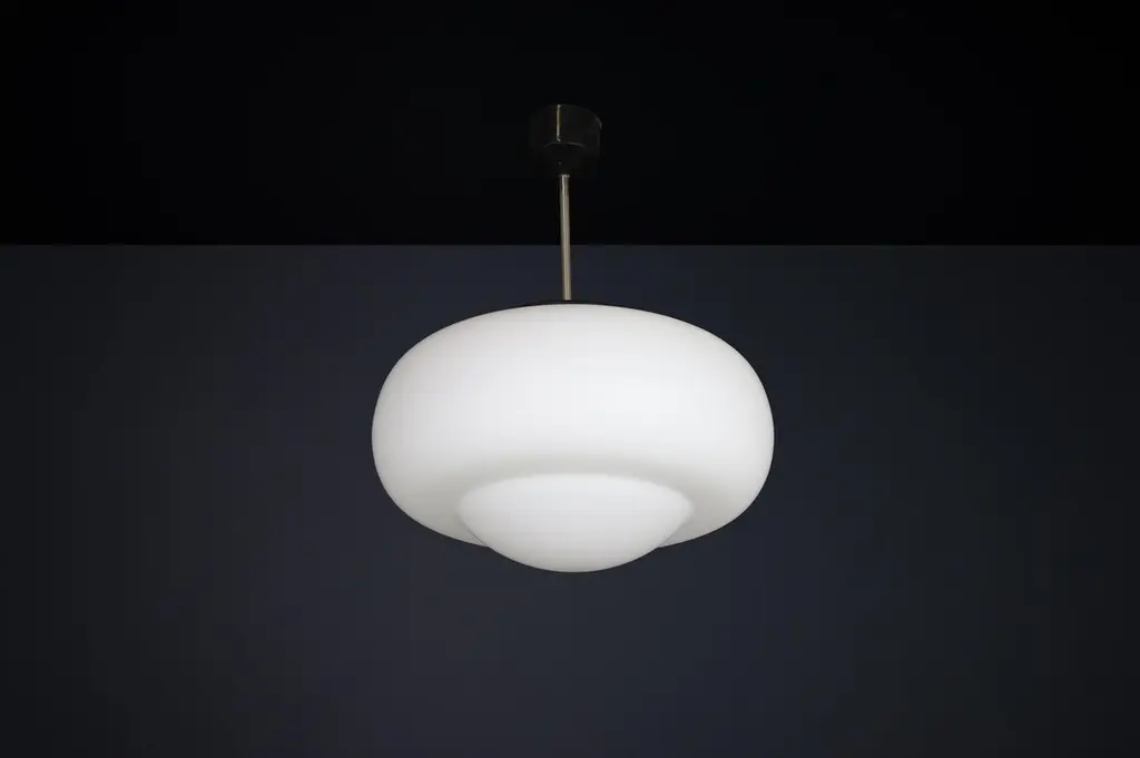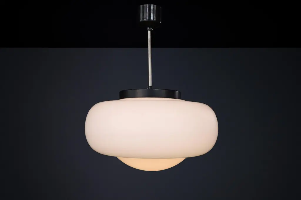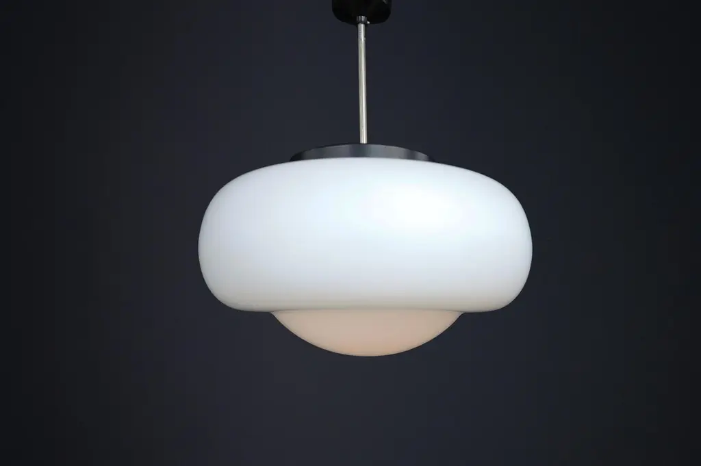 Mid-Century Modern Opaline Glass Pendant Lamp, Czechoslovakia, 1960s