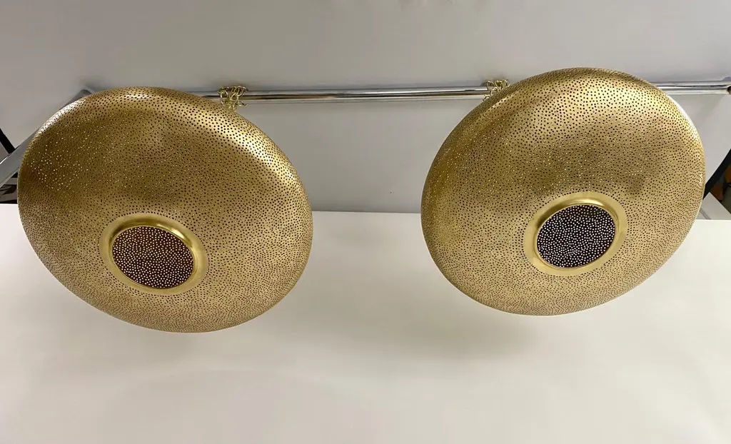 Mid- Century Modern Style Oval Spaceship Brass Pendant Or Lantern, A Pair
