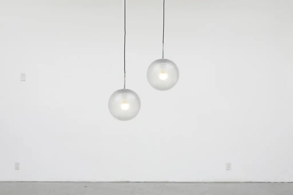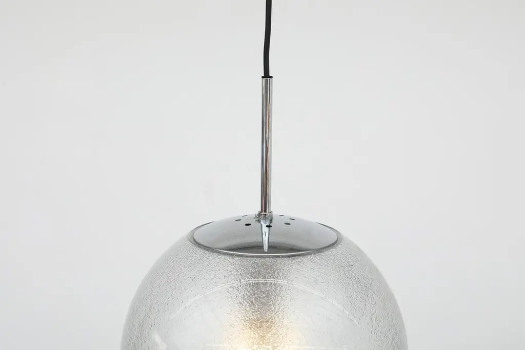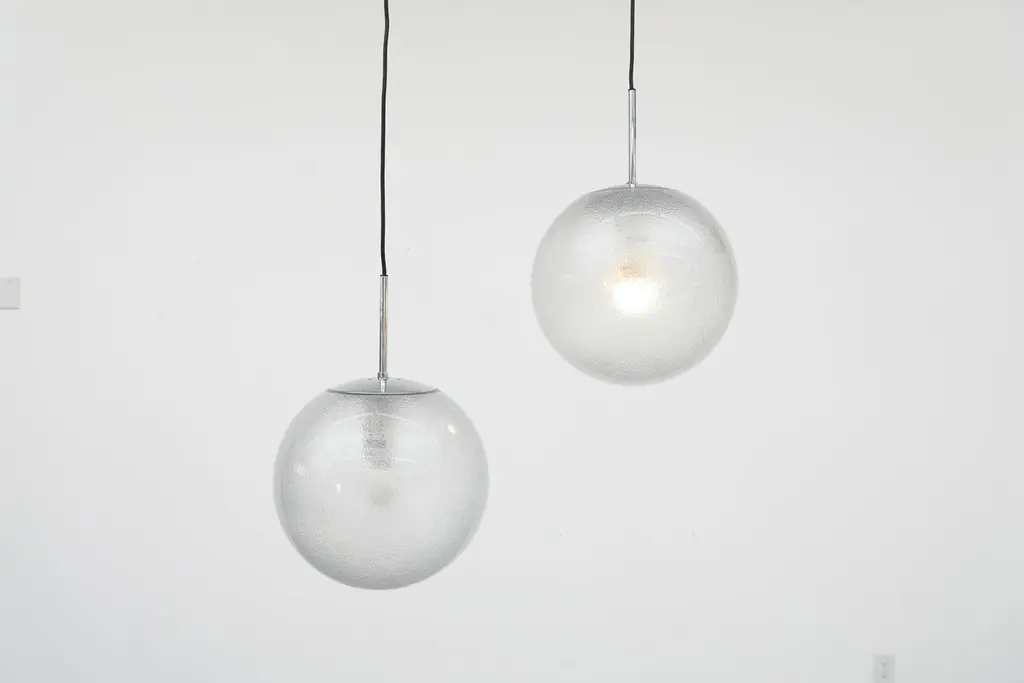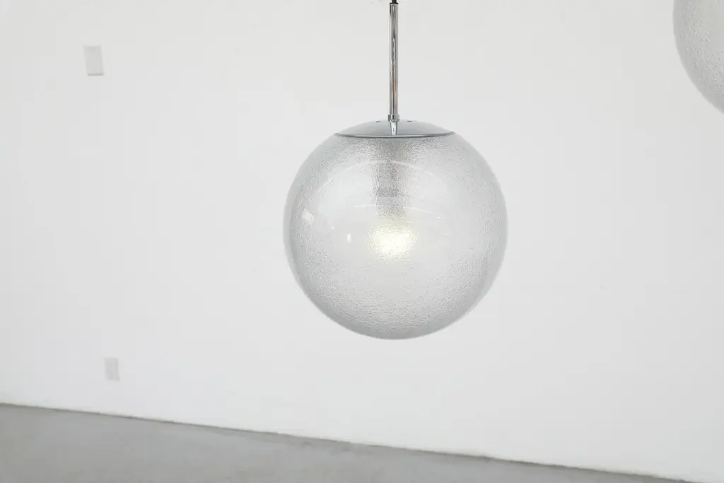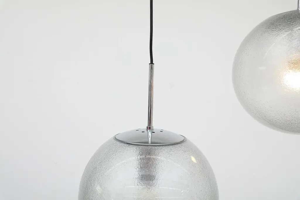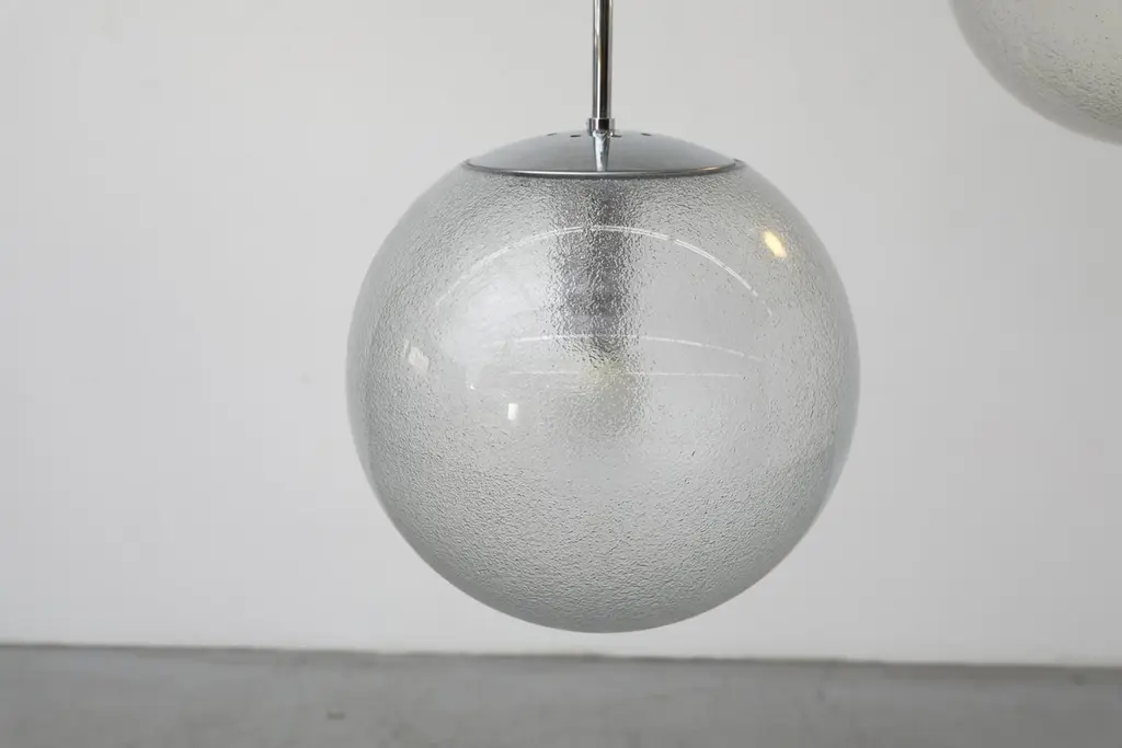 Mid-Century Raak Style Chrome & Textured Plexiglass Bubble Globe Pendant Lights