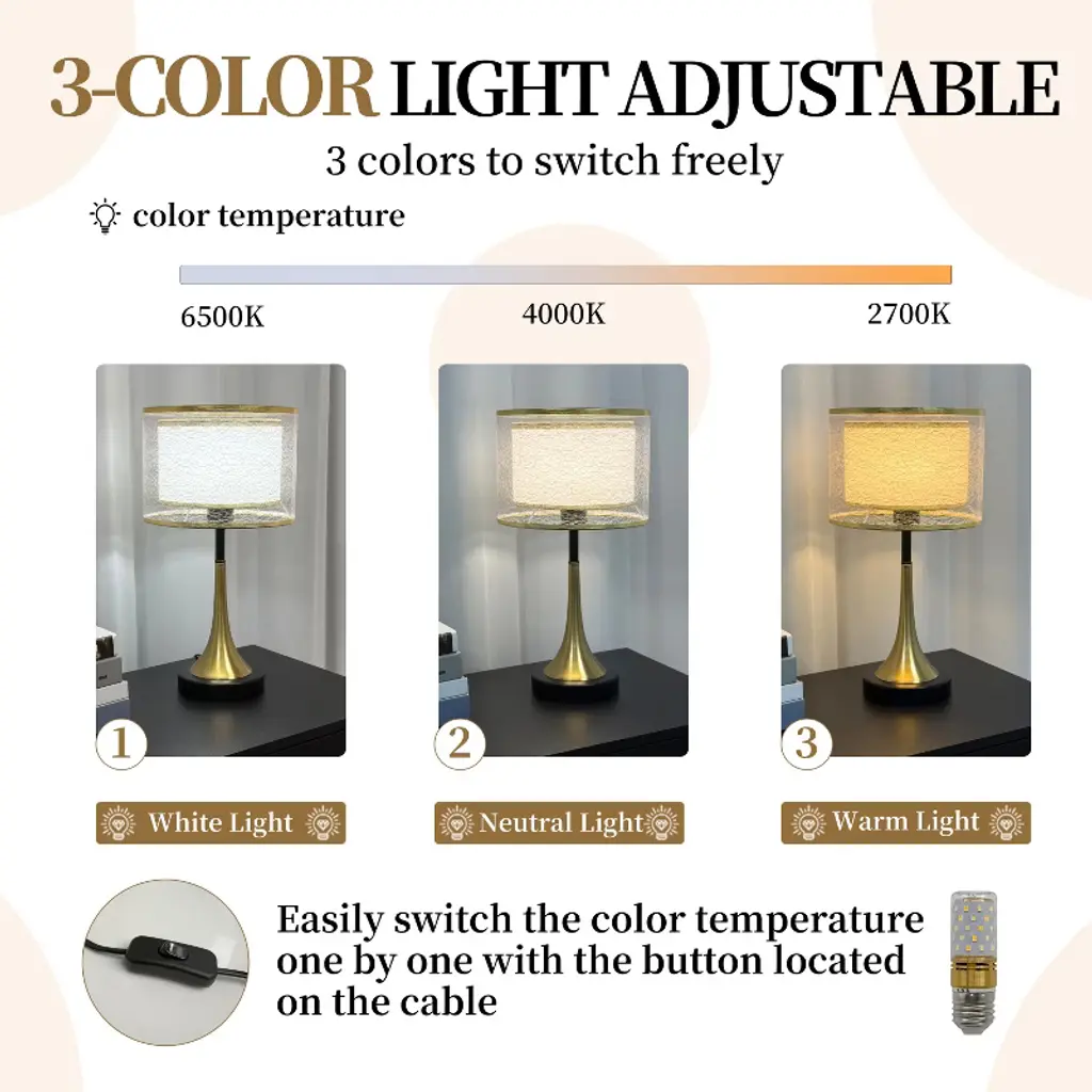 Mid-century Vintage Nightstand Table Lamp 3 Colors Desk Lamp Gold Accents Base