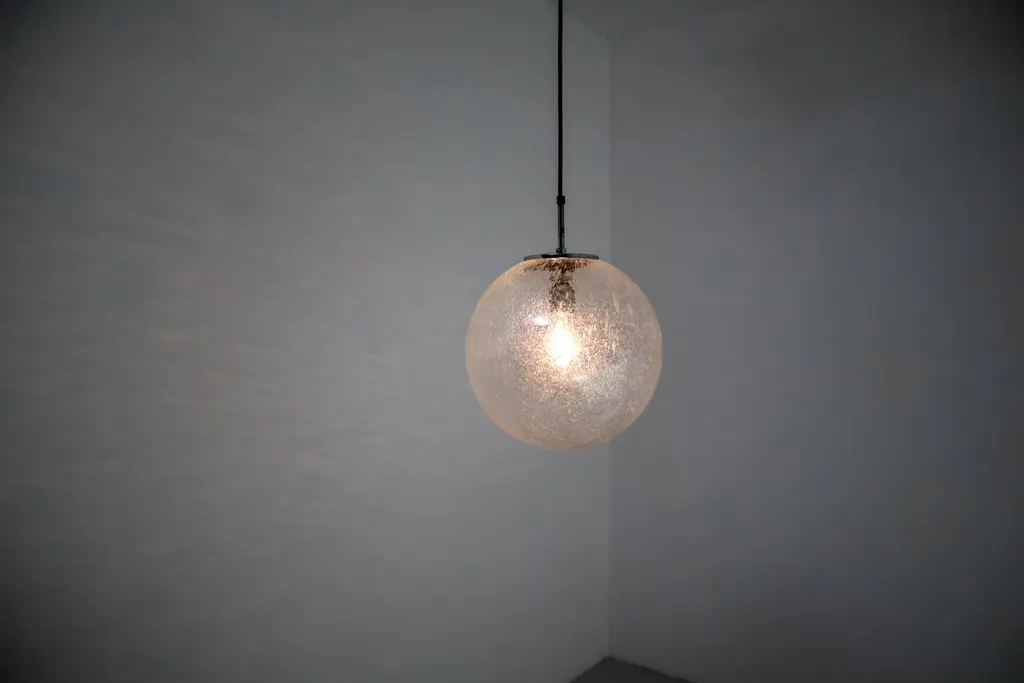Midcentury Bubble Glass Globe Pendant By Glashütte Limburg , Germany, 1970s
