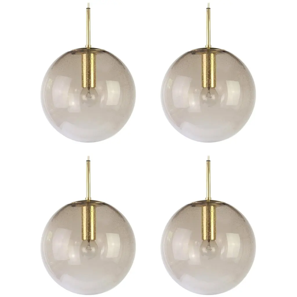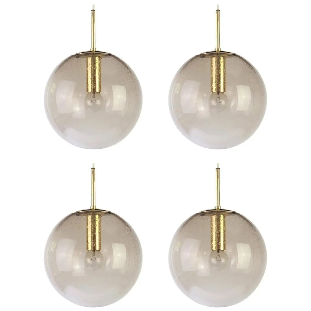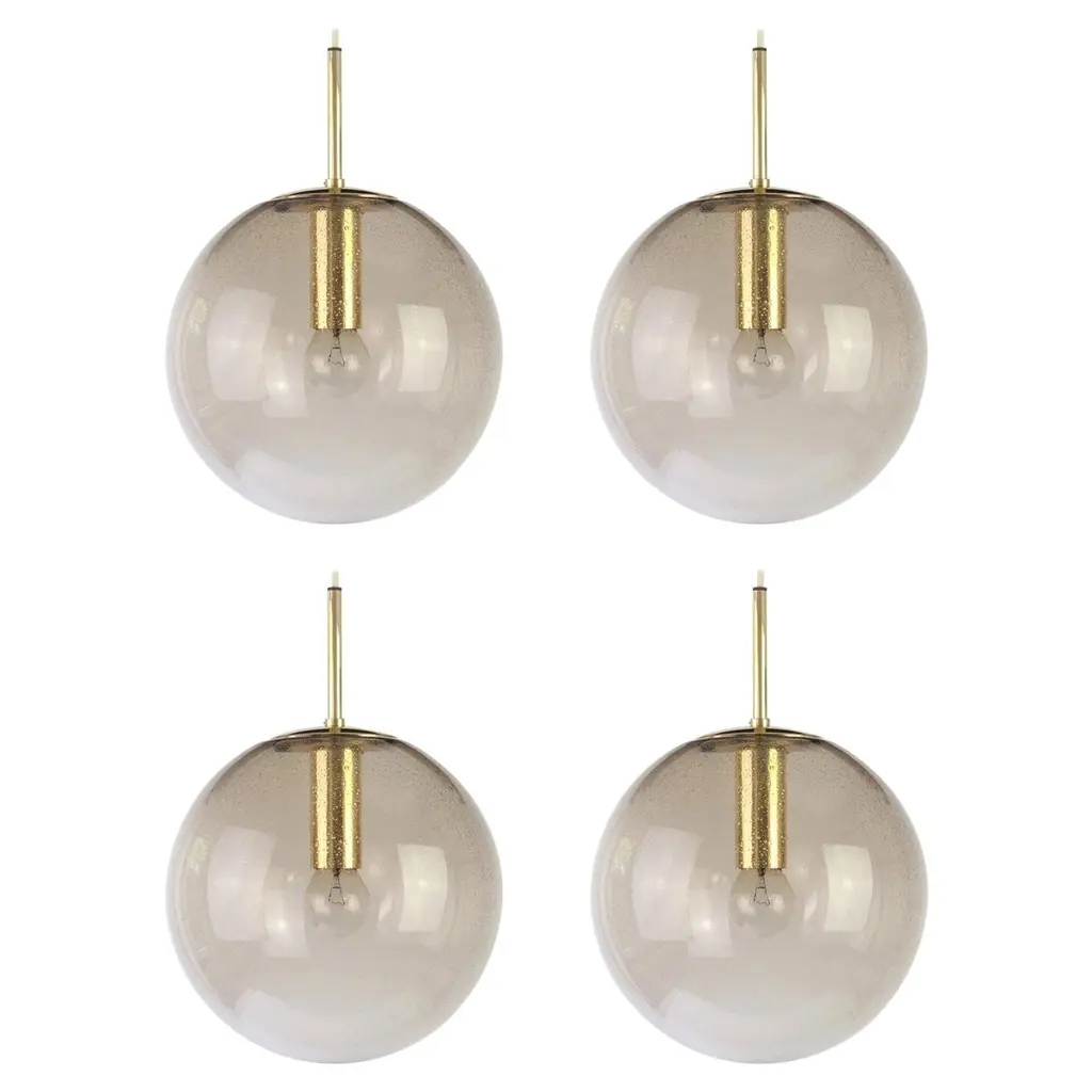 Globe pendant lamps made of handblown glass and chrome hardware. They were produced in the 1970s by the German high end glass manufacturer Glashütte Limburg. 7 pieces available.