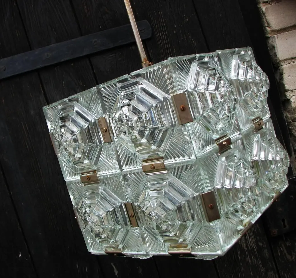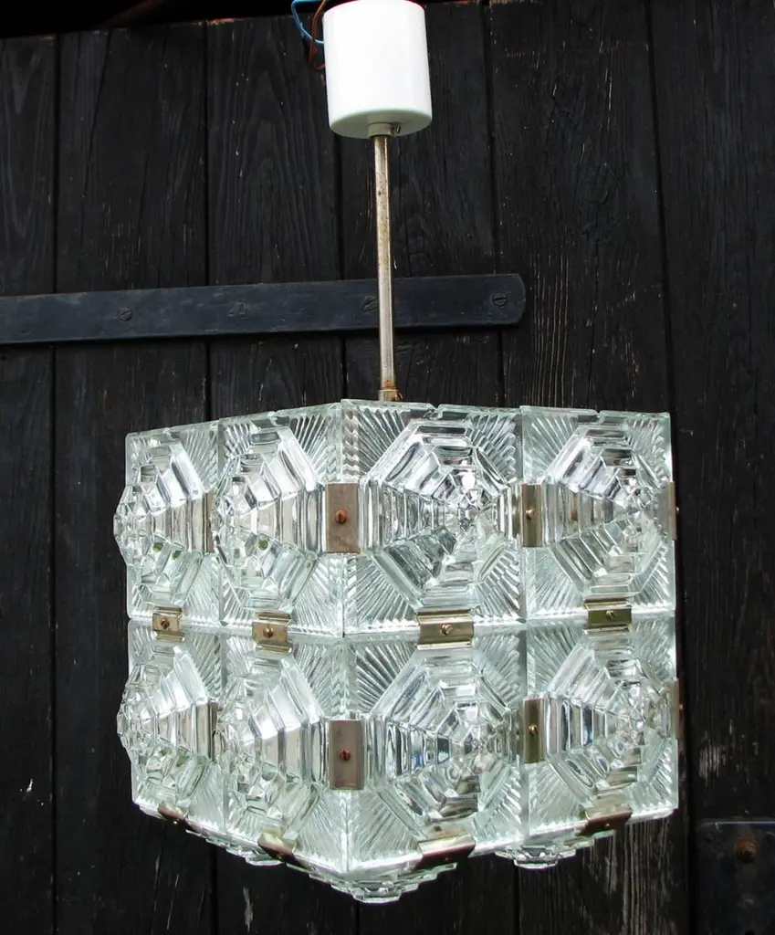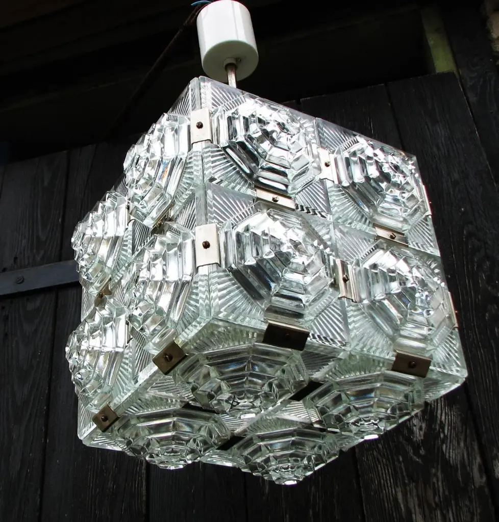 Midcentury cube form pendant ceiling fixture fitted with one E27 socket up to 100W. Made in the late 1960s by Kamenicky Senov in former Czechoslovakia.Up to 25 pieces available.