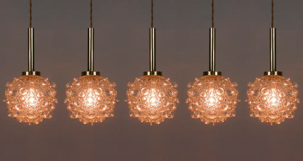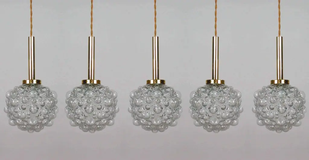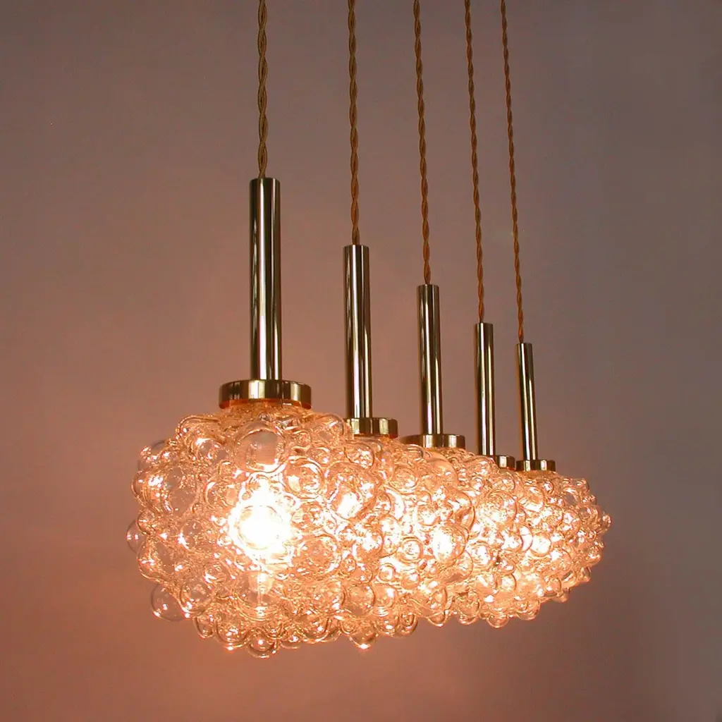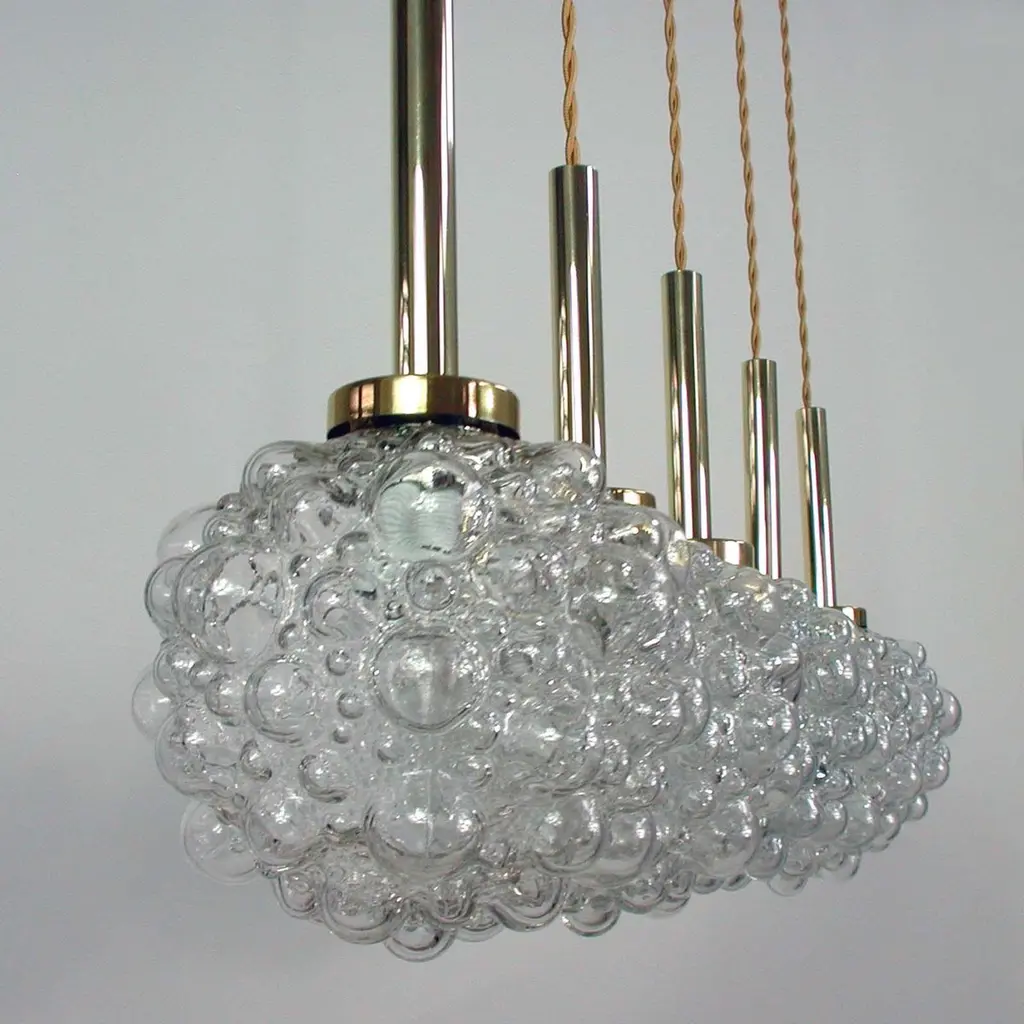 Midcentury German Clear Bubble And Brass Pendant, 1960s