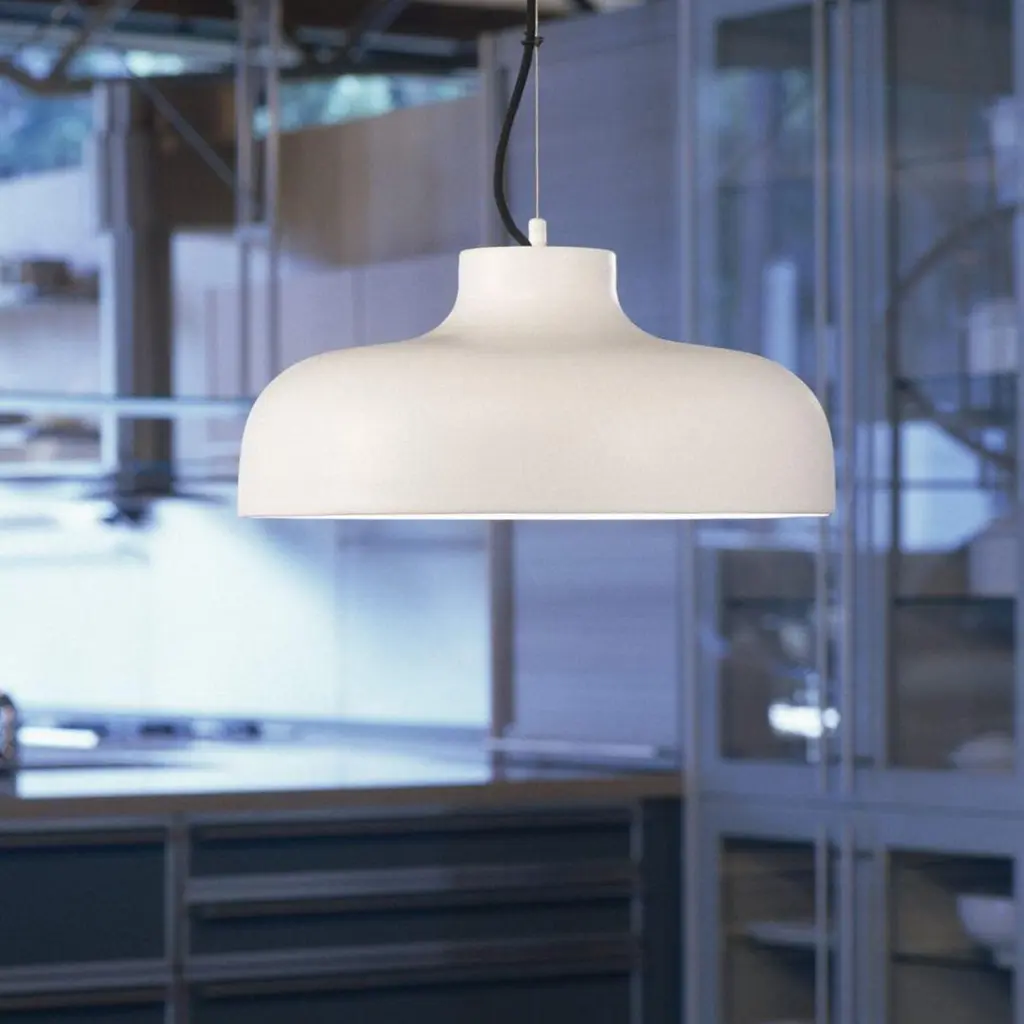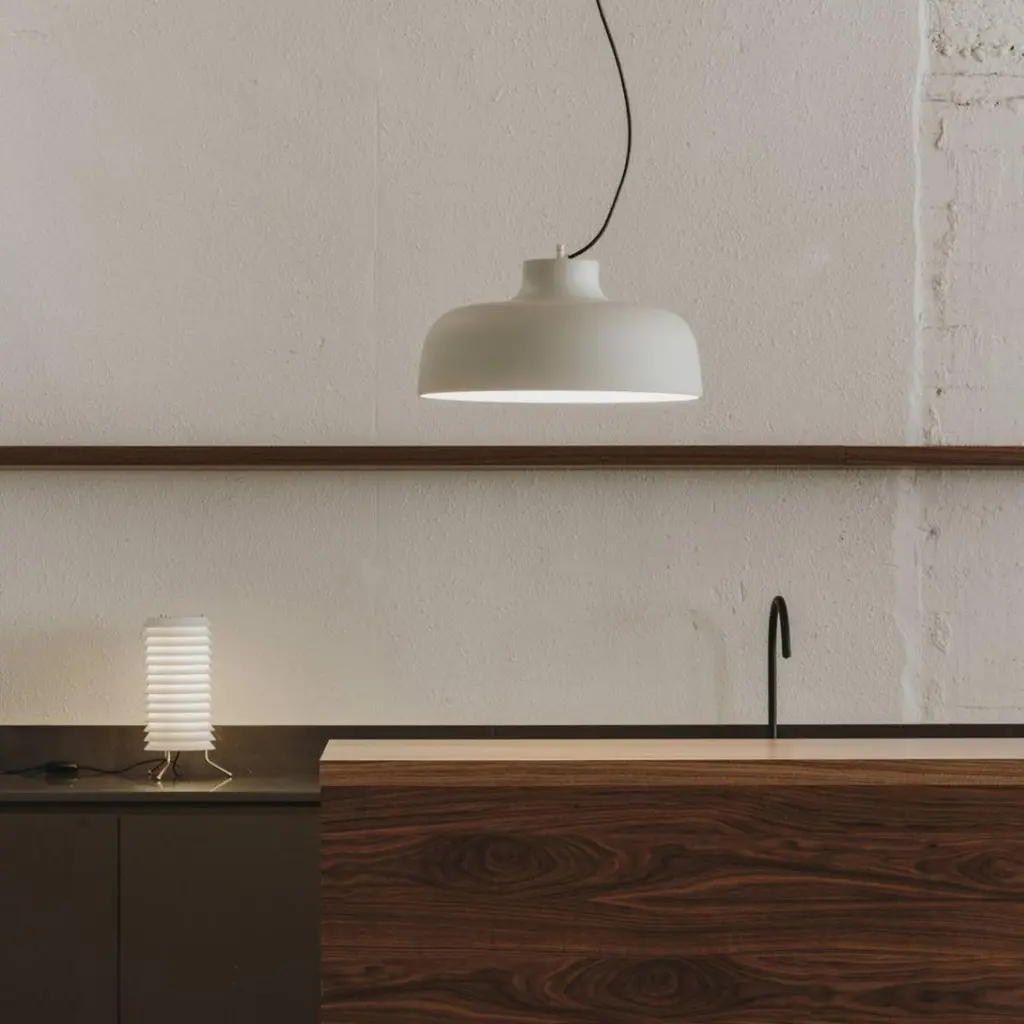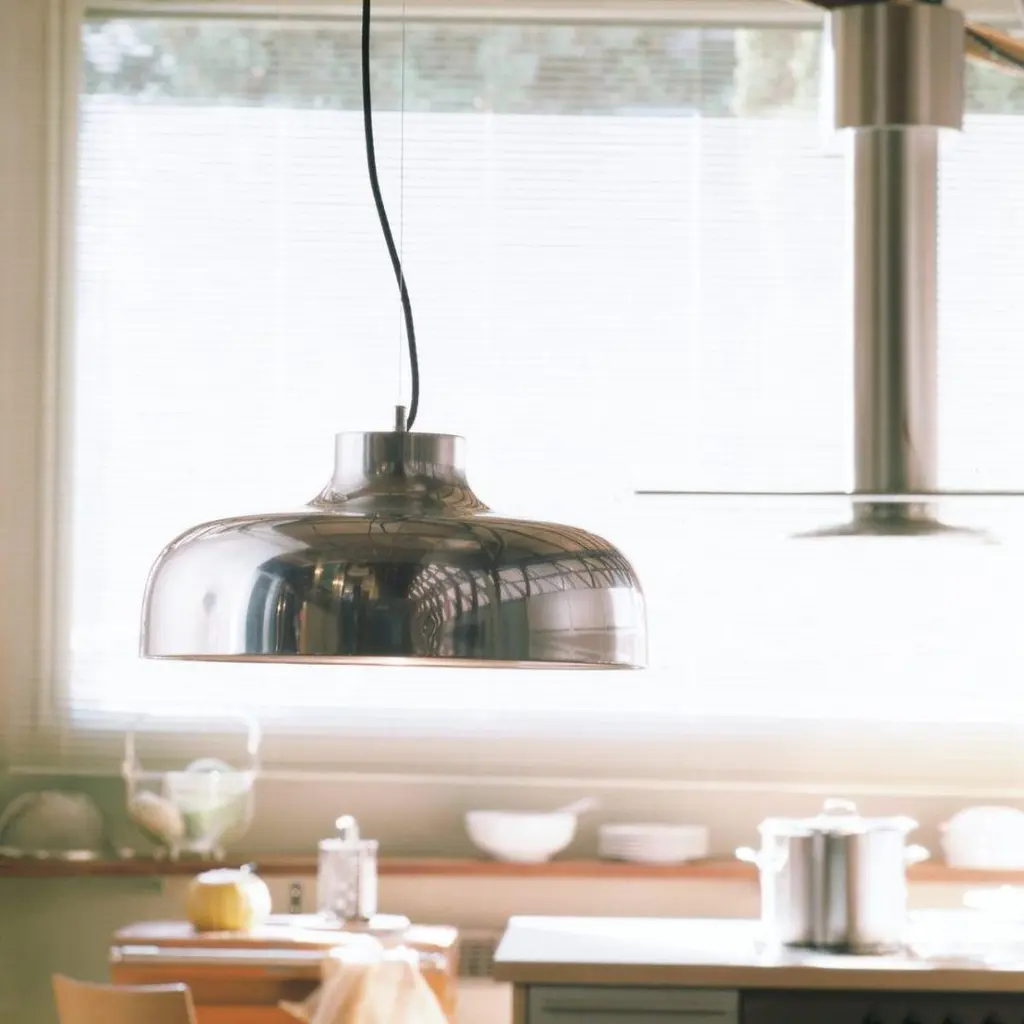 Miguel Milá 'M68' pendant lamp in chromed aluminum for Santa & ColeFounded in 1985 in Barcelona, Santa & Cole produces iconic pieces by such luminaries as llmari Tapiovaara, Miguel Milá and other European icons with a commitment to faithfully re-edition their legendary designs with uncompromising attention to detail, materials and craftsmanship.The 'M68' lamp was originally designed in 1962 by renowned creator Miguel Milá. Featuring a large bell-shaped opaque shade the light is wonderfully diffused onto the surfaces beneath. These re-editions have been upgraded from the original methacrylate lamps in the '60's and are now executed in painted or chromed aluminum and suspended by a steel cable. The 'M68' continues to be meticulously crafted to Santa & Cole's exacting standards using the highest quality materials available.Price per item. Available in unlimited quantities and in choice of matte white, glossy red, matte black or polished chrome. This listing is for the 'M68' pendant lamp in polished chromed aluminum.In stock lead time 1-2 weeks. Out of stock can add an additional 4-8 weeks or more. Please note that lead times and inventory availability are subject to change without notice. For time sensitive orders, please contact us for current lead times prior to purchasing.Kindly note that items must ship from Santa & Cole’s Barcelona warehouse, so 1st Dibs arranged shipping and local pickup are not available. Shipping cost quoted is per item and cannot be combined. Free standard shipping on all lighting orders less than $17,000.Accommodates 1 standard medium base E26 bulb maximum 100 watts, lower with incandescent (bulb not included). Suspended from 4.6" diameter junction box by fine metal wire and powered by black cord with maximum drop of 127.9". This lamp is UL listed and IP20 rated.Made to order. All sales are final.