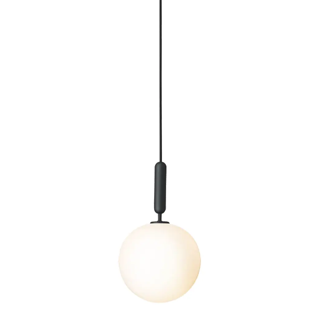 Miira 1 is a single pendant in a clear and clean expression. This Miira pendant is designed with a fabric covered cable and a slim metal stem ending with a mouth-blown glass in optic clear pattern. Miira 1 is ideal as a pendant on its own or as a series across the home.