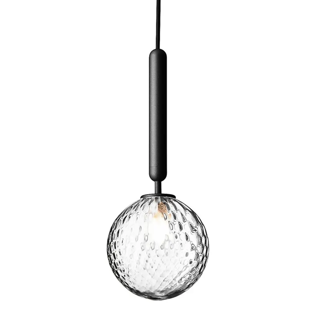The Miira 1 pendant lamp by the Danish brand Nuura catches the eye with a beautifully shaped embossed glass dome that casts an atmospheric light, with the elegant metal base adding a considered contrast to the design. This sleek pendant light is at its best close to the ceiling or wall, where the light pattern cast by its embellished dome can reach its full potential. Miira 1 also makes a lovely window light. Created by the awarded lighting designer Sofie Refer, the lamps of the Miira collection combine timeless Scandinavian design with fresh, modern minimalism that easily fits into domestic settings as well as public environments. The round glass shades filter the light in a smooth, harmonious way, and make for the most essential element of the Miira luminaire.