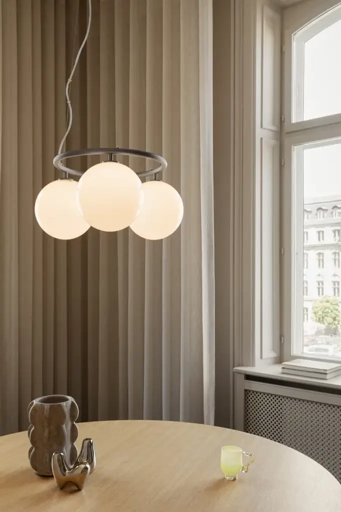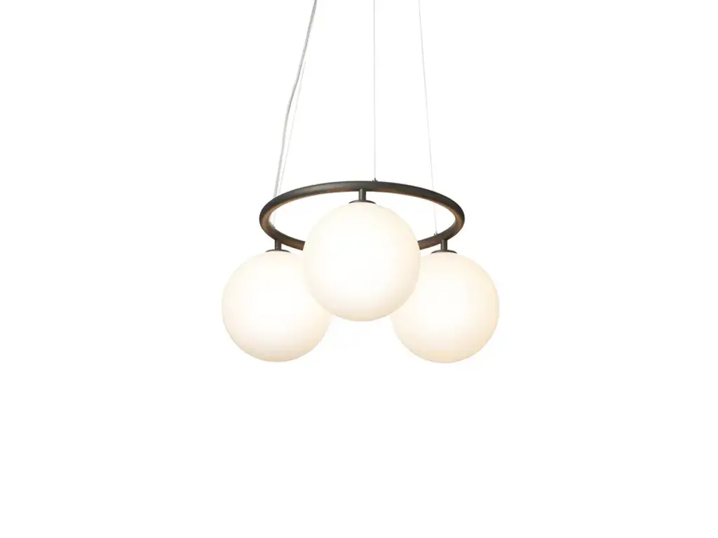 Miira 3 Circular is the smallest of the round Miira chandeliers and created in a subtle yet bold design. The modest ring size emphasises the large opal white glass globes, making for a simple yet contrasting expression. Miira 3 Circular is suspended by a special wired system that allows it to be set at the ideal height in rooms with limited space available and is ideal above a round dining table.Light source: Socket: G9 Max wattage: 7W LED Voltage (V): 220-240V / 120VLight sources not included Dimmable if installed with appropriate dimmable LED light source(s) suitable for your dimmer circuit.Miira is a series of lamps in a simple and timeless design which embraces the Nordic elegance and function. The neatly mouth-blown glass and stylish processed metal give the design balance and depth. The Optic Clear glass with the unique embossed pattern give a playful light and spreads a unique atmosphere to the room the lamp is placed in.Soft Nordic light shines from the Opal White glass and spreads a unique atmosphere to the room the lamp placed in.
