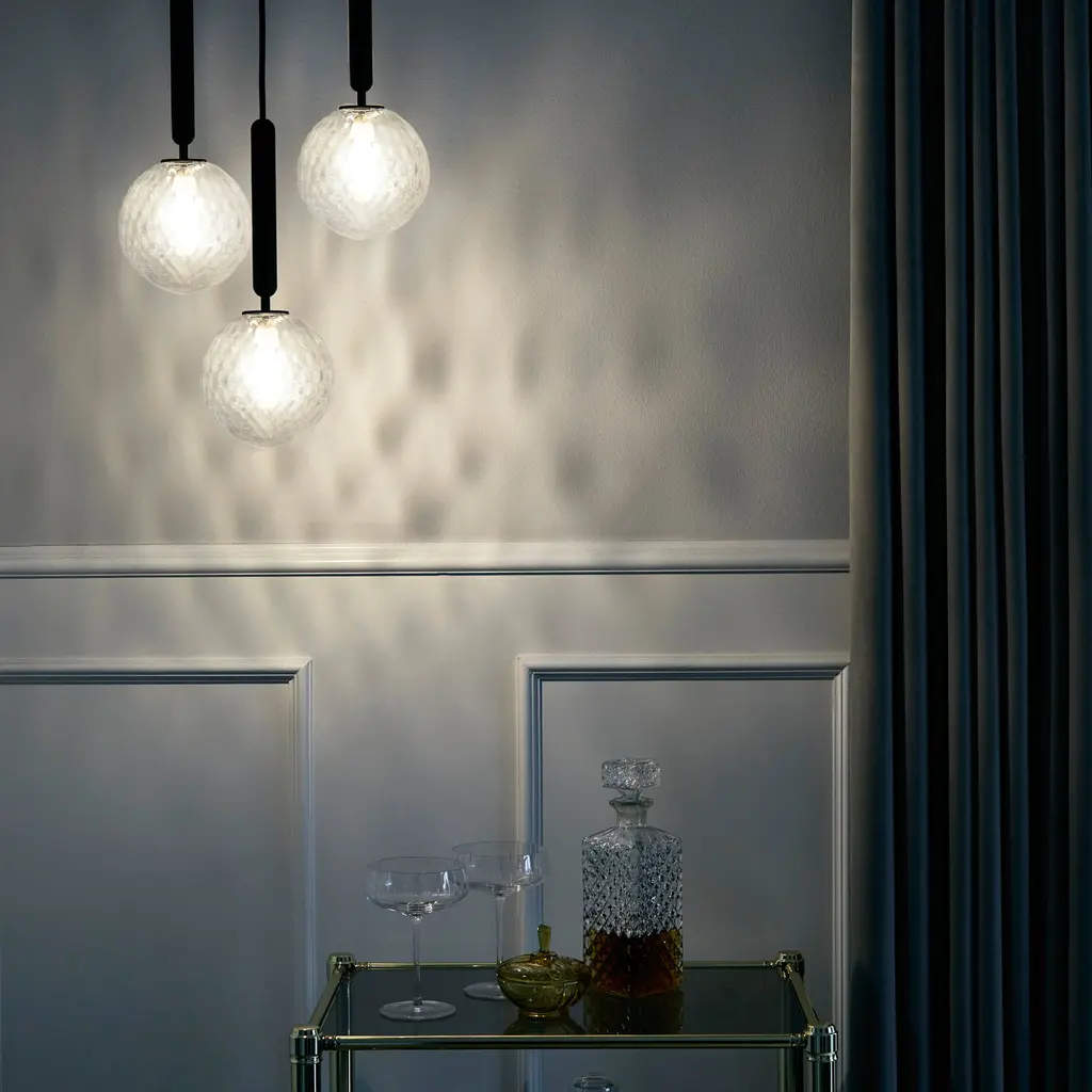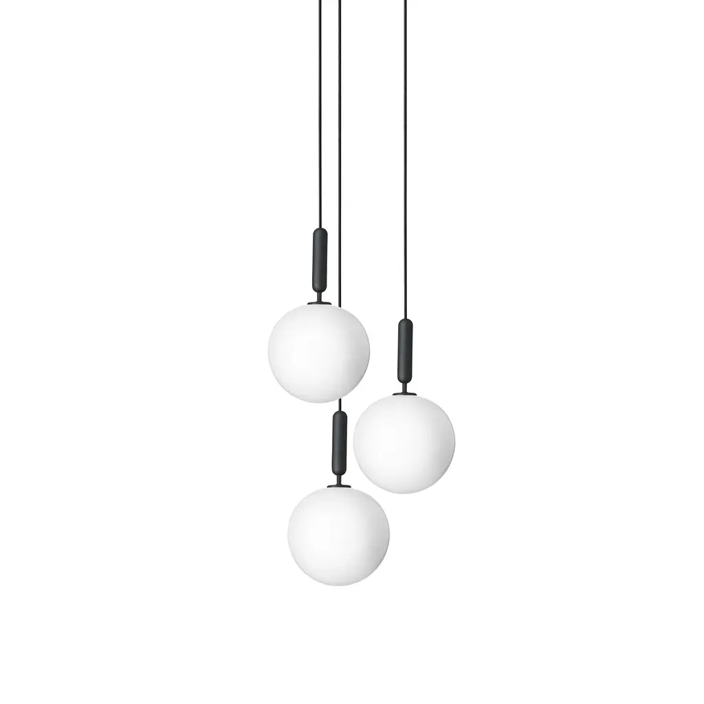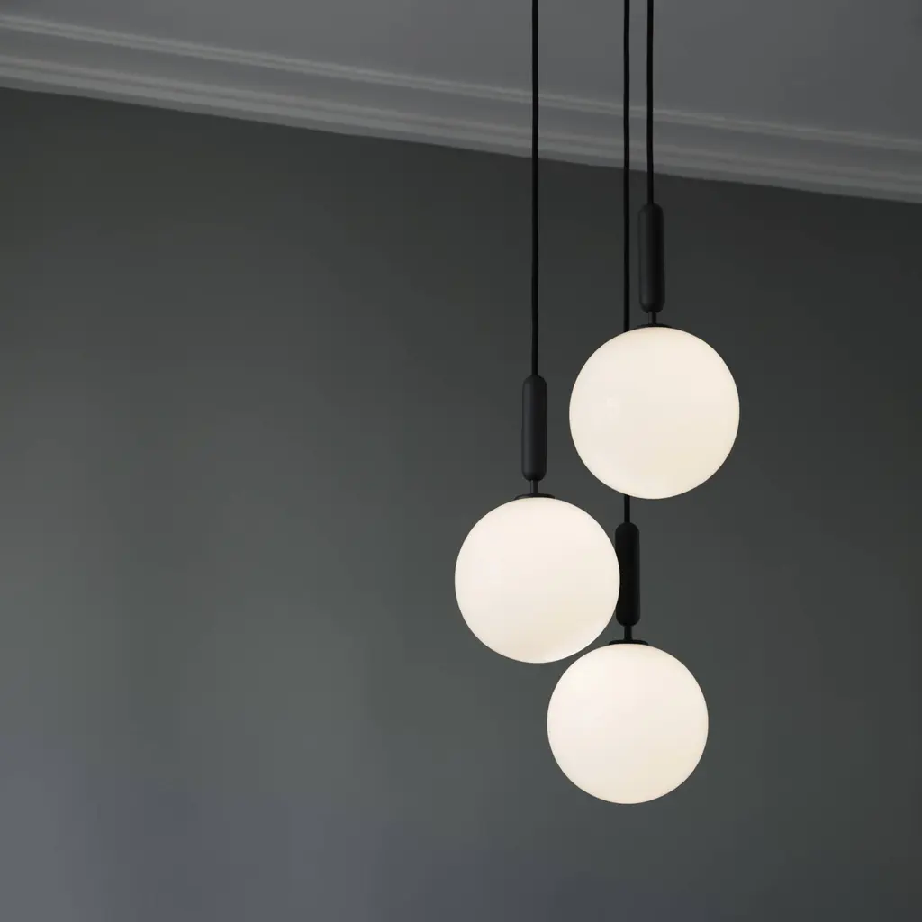 Danish brand Nuura goes for a triple play with its handmade globe light Miira 3. Hewing to the original's lyrical simplicity, the pendant features a trio of larger glass orbs in mouth-blown opal glass that create a gorgeous contrast with the dark grey metal structure. With her keen eye for balance and form, designer Sofie Refer offers a masterful glowing presence to illuminate a dining table or room corner.
