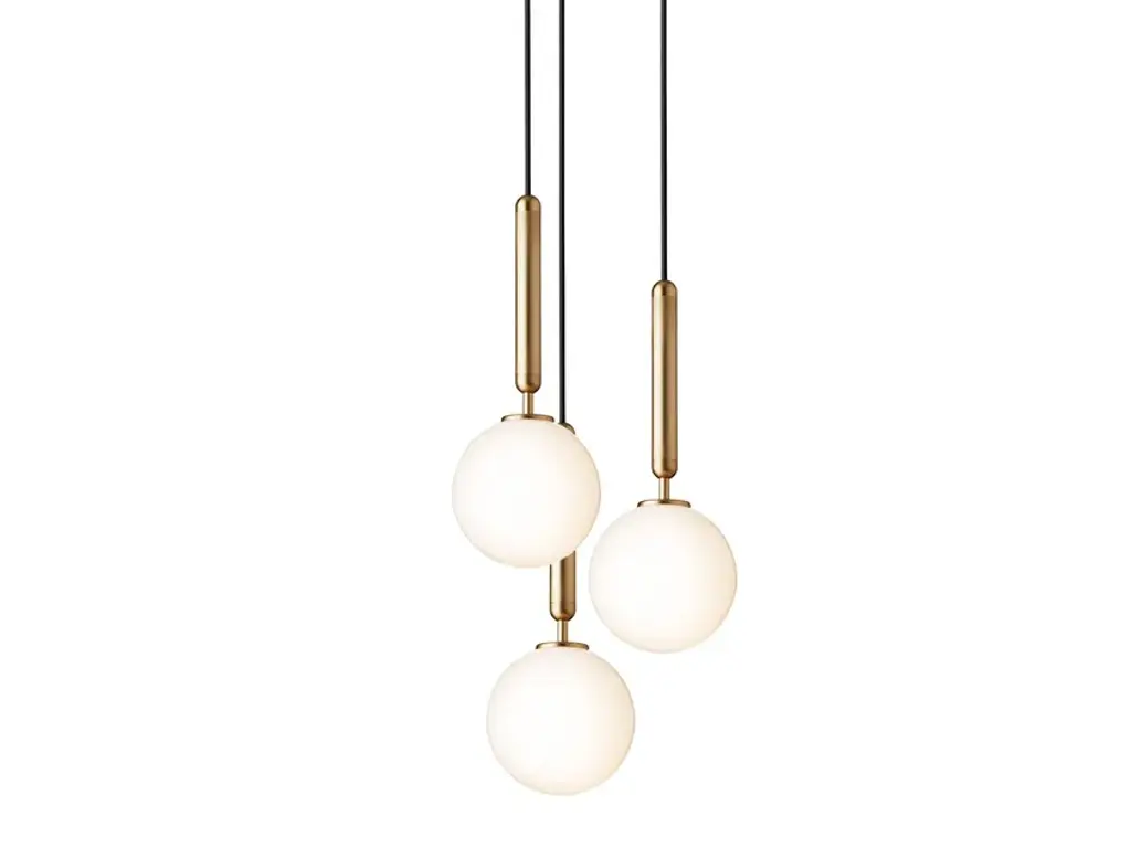 Danish brand Nuura goes for a triple play with its handmade globe light Miira 3. Hewing to the original's lyrical simplicity, the pendant features a trio of larger glass orbs in mouth-blown opal glass that create a gorgeous contrast with the dark grey metal structure. With her keen eye for balance and form, designer Sofie Refer offers a masterful glowing presence to illuminate a dining table or room corner.