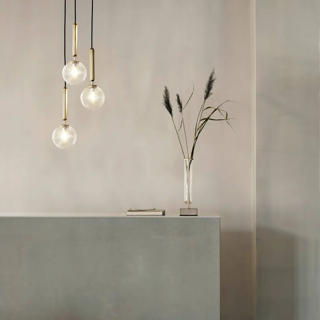 Danish brand Nuura goes for a triple play with its handmade globe light Miira 3. Hewing to the original's lyrical simplicity, the pendant features a trio of larger glass orbs in mouth-blown opal glass that create a gorgeous contrast with the dark grey metal structure. With her keen eye for balance and form, designer Sofie Refer offers a masterful glowing presence to illuminate a dining table or room corner.