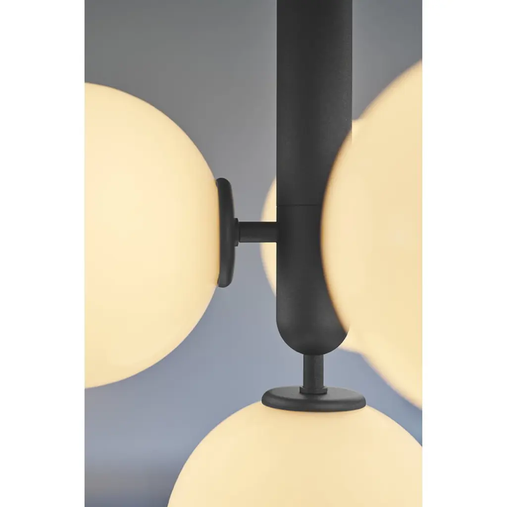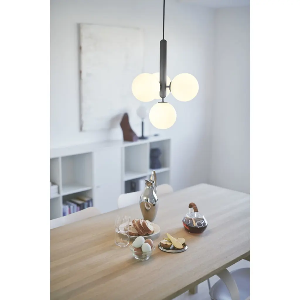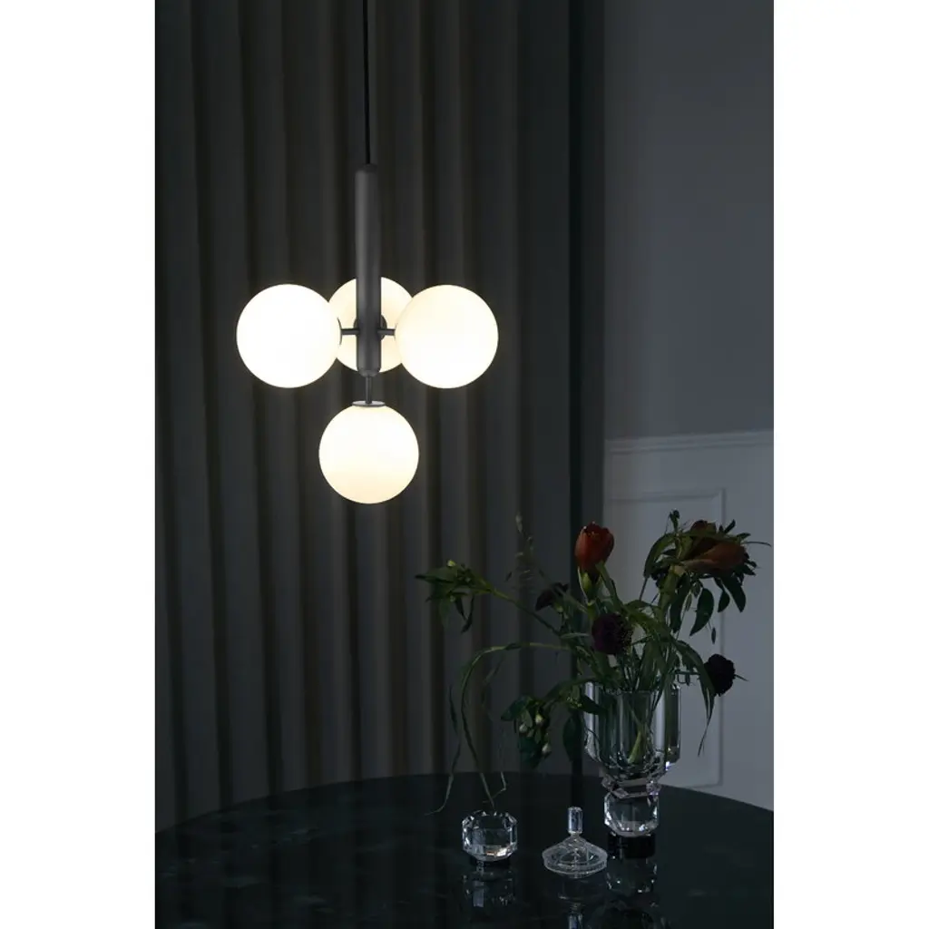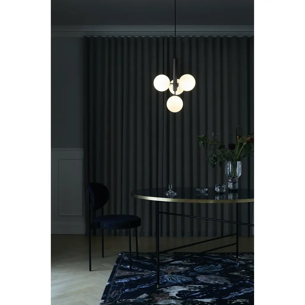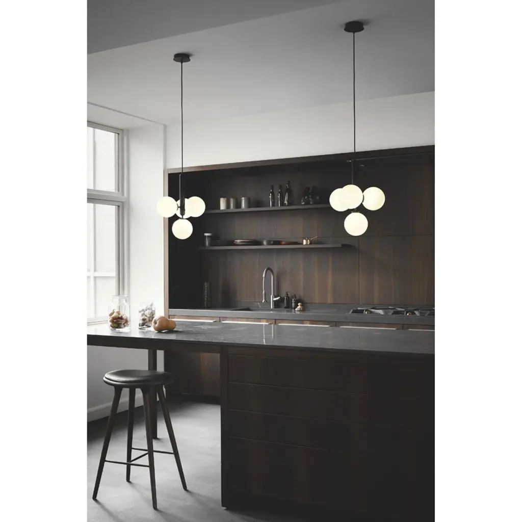 The Miira 4 pendant lamp by the Danish brand Nuura catches the eye with beautifully shaped opal glass domes that cast an atmospheric light, with the elegant metal base adding a considered contrast to the design. Created by the awarded lighting designer Sofie Refer, the lamps of the Miira collection combine timeless Scandinavian design with fresh, modern minimalism that easily fits into domestic settings as well as public environments. The round glass shades filter the light in a smooth, harmonious way, and make for the most essential element of the Miira luminaire.