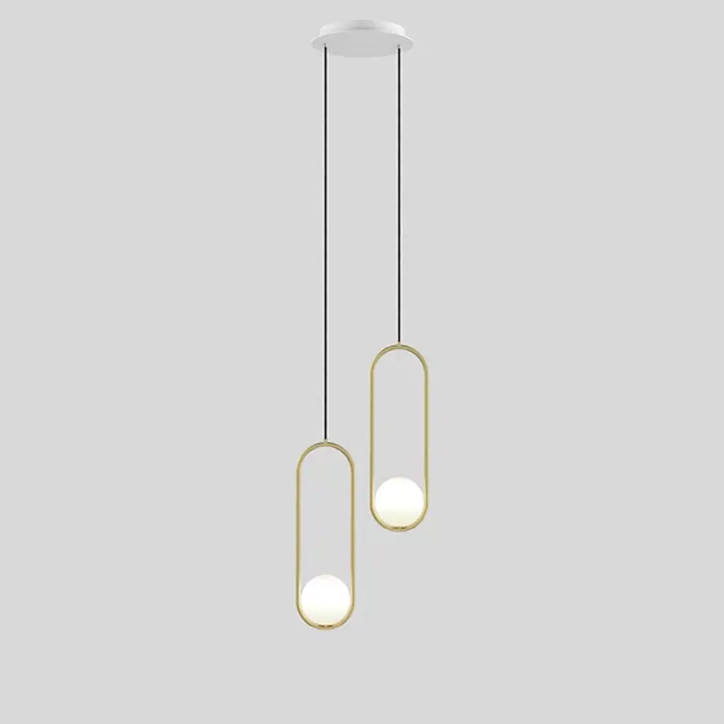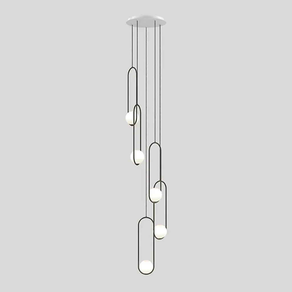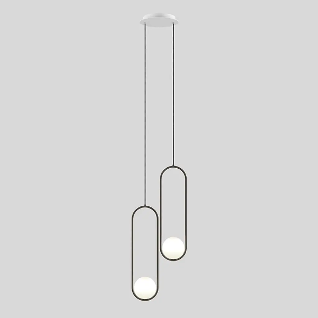 The Mila LED Multi-Light Pendant from Matthew McCormick Studio brings an unforgettable eloquence to interior spaces. Fluid shapes complement one’s refined décor. The piece displays a mix of technical artistry and understanding. A stepped disc canopy keeps the fixture in place, sending slim cables to intriguing sculptural lamping below. Each vertical oval frame supports LED lamping inside a spherical shade of handblown opal glass produced by artisans. The pearl-like glass scatters an enchanting warmth around the fixture, creating an expressive silhouette.