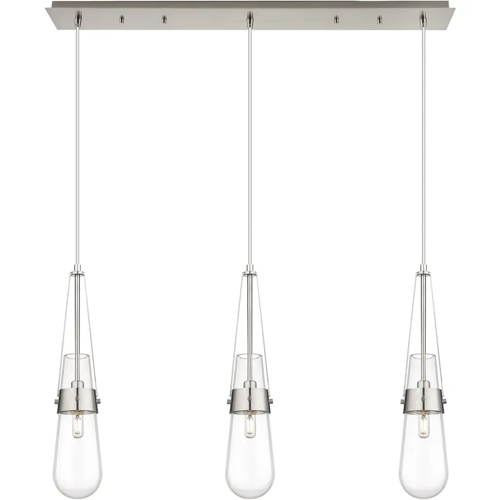 Milan 3 Light 36.13 Inch Brushed Brass Linear Pendant Ceiling Light In Clear Glass