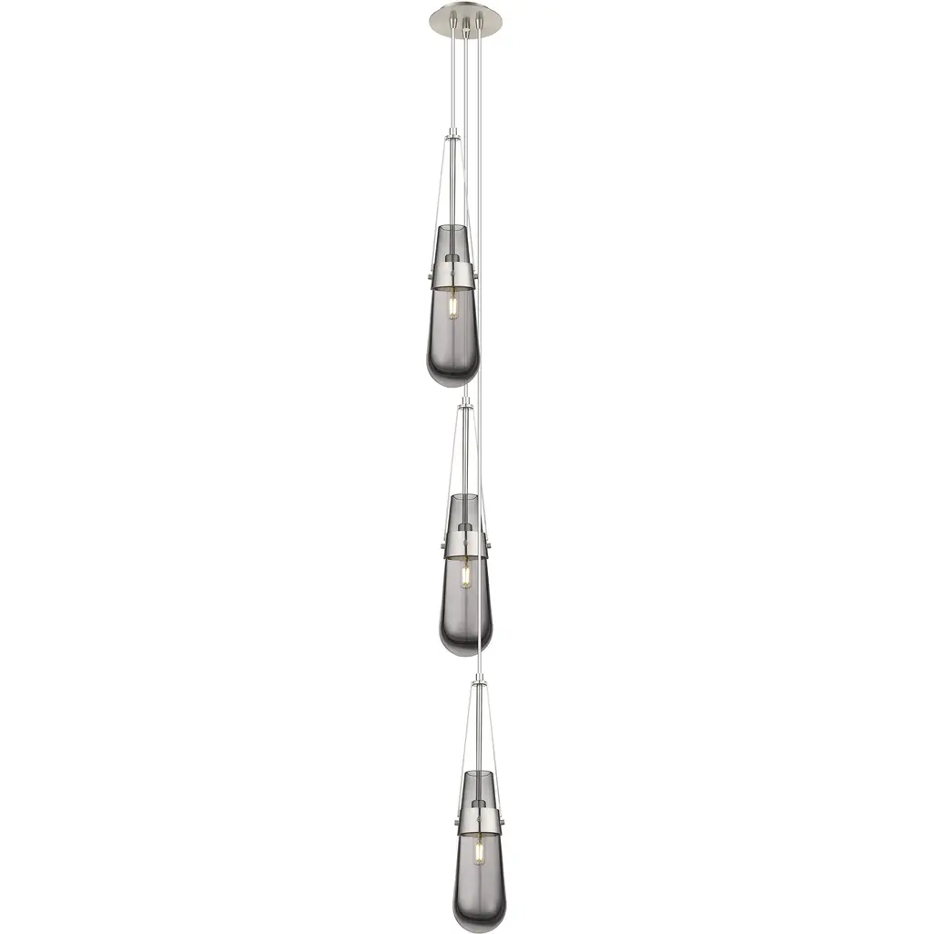 Milan 3 Light 6.38 Inch Polished Nickel Multi Pendant Ceiling Light In Light Smoke Glass