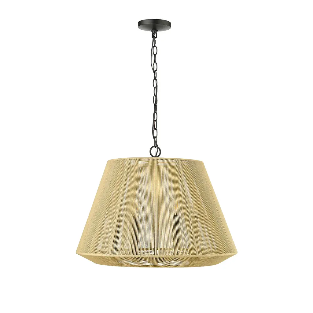 The Sterling Collection of pendant lighting weaves the organic lines of Brazilian modernism with artisan-crafted, durable cotton twine for a stunning effect. This design is perfect for contemporary and boho spaces alike. Available in matte black or modern gold finishes with either white or brown natural fiber shades, these 6-light fixtures create an exciting design statement for kitchen islands, dining areas, and entryways.Features:Dimensions:Electrical Specifications: