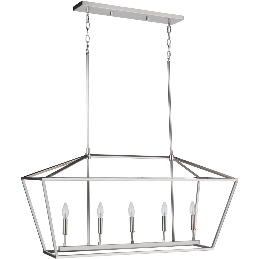 Finish Color: Satin Nickel, Width: 12", Height: 56", Chain Length: 5", Number Of Bulbs: 5, Wattage: 60 Watts, Moisture Rating: Dry Rated, Desc: Pendants serve as both an excellent source of illumination and an eye-catching decorative fixture. Three section stem included: 6", 12" and 18". Wire will allow for two additional 12" stems. No. of Rods: 3 / Rod Length(s): 18.00. 1 year limited manufacture's warranty Chain Length: 5.00. ,