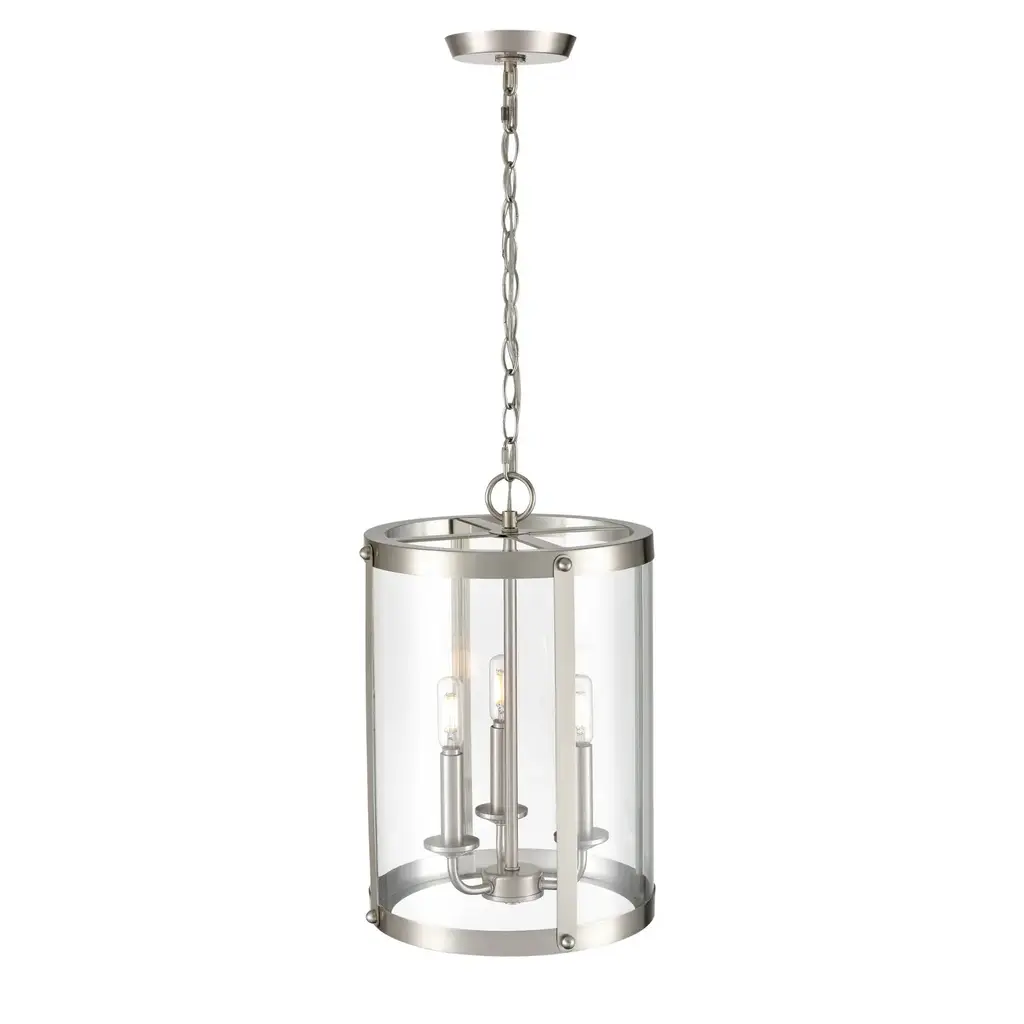 Sparkling clear glass cylinders set into a minimalist steel constructed framework provide abundant light in the Aydenn Collection of pendant lighting. Finished in quintessential matte black or gleaming brushed nickel, these definitive design statements are a bright addition to the foyer or hall.Features:Dimensions:Electrical Specifications: