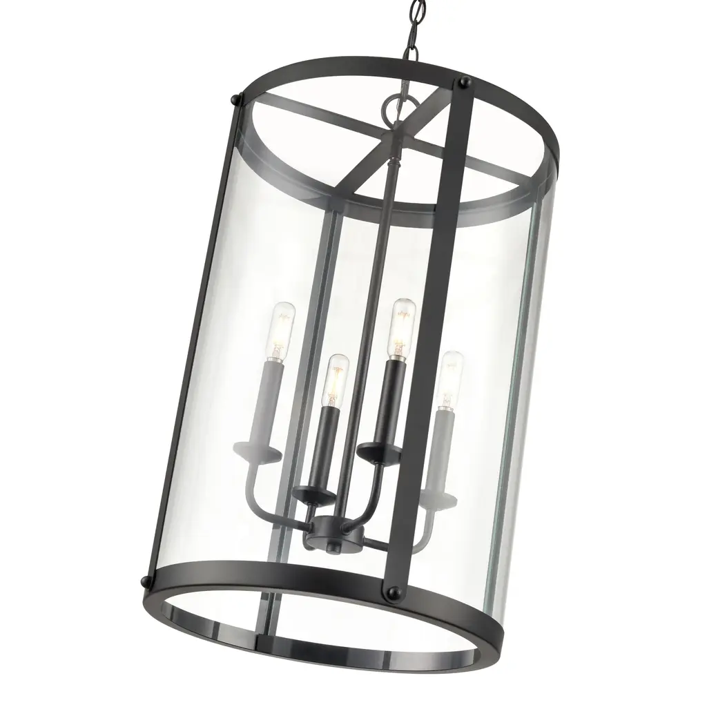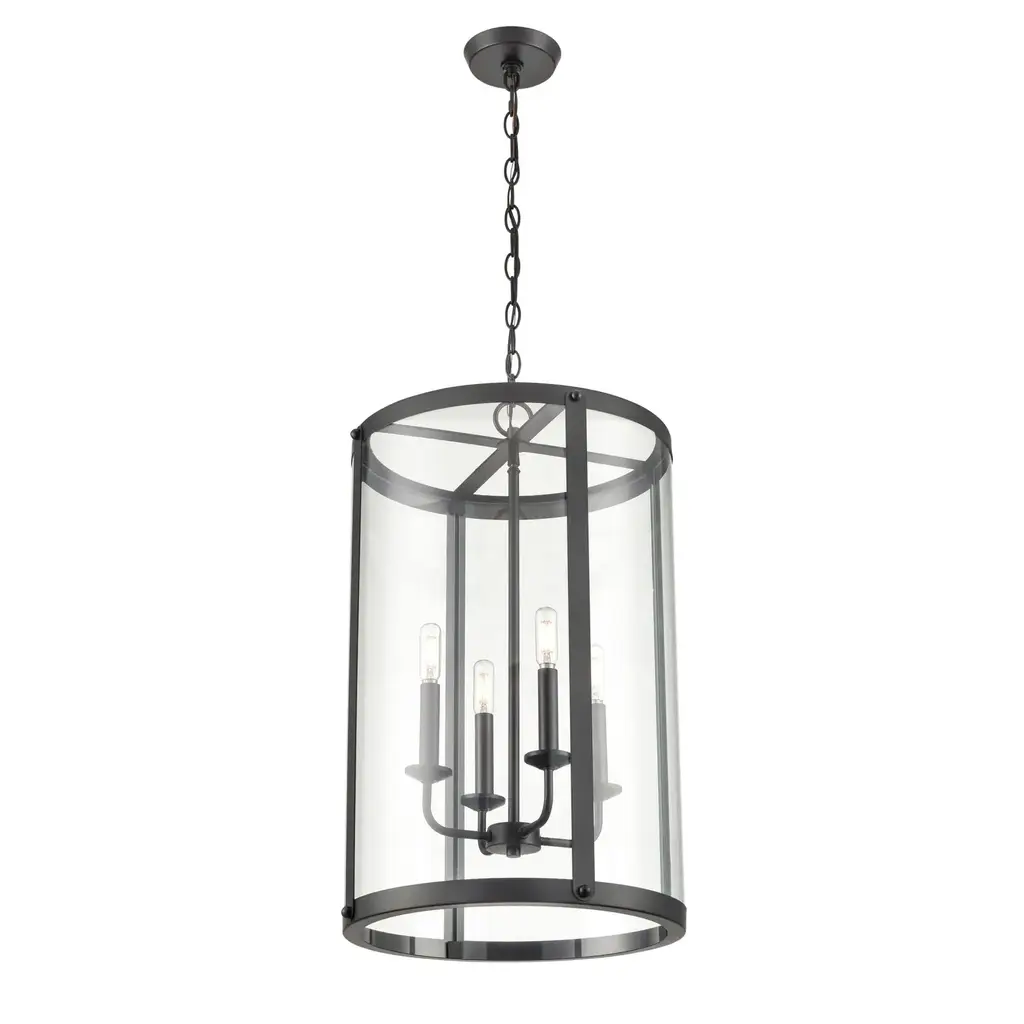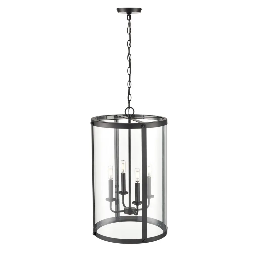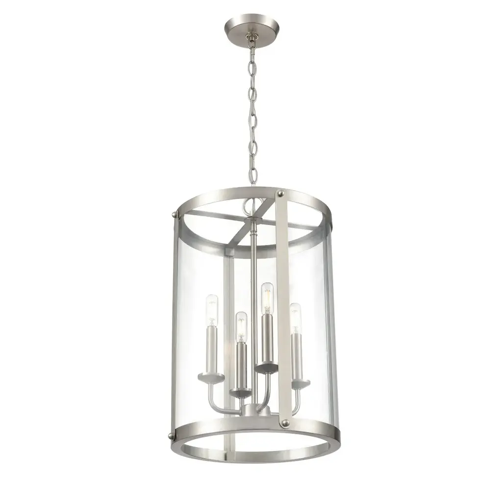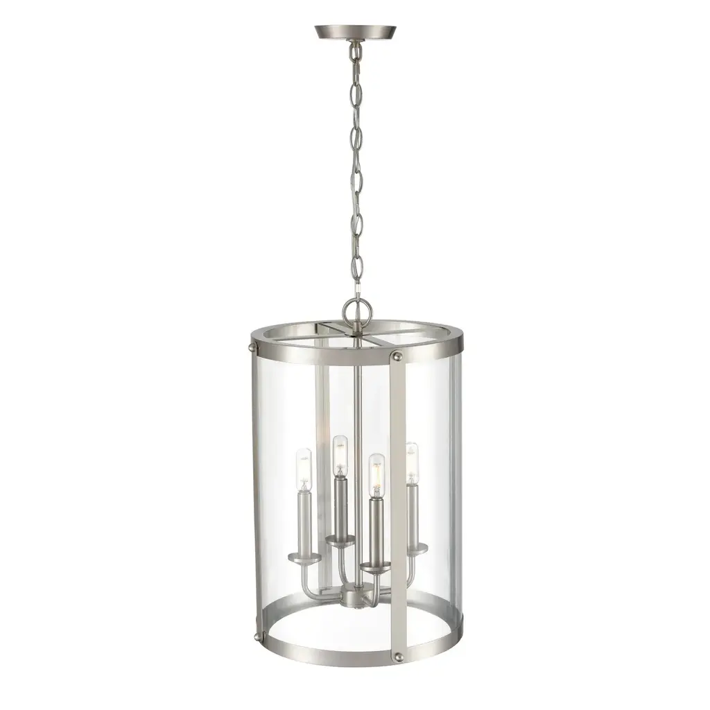 Sparkling clear glass cylinders set into a minimalist steel constructed framework provide abundant light in the Aydenn Collection of pendant lighting. Finished in quintessential matte black or gleaming brushed nickel, these definitive design statements are a bright addition to the foyer or hall.Features:Dimensions:Electrical Specifications: