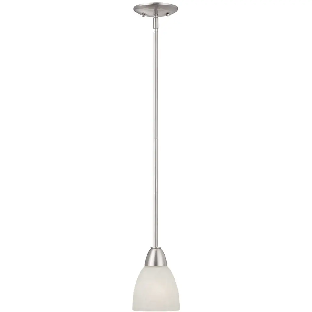 Collection: Bristo, Finish Color: Satin Nickel, Width: 5", Height: 45.5", Number Of Bulbs: 1, Wattage: 100 Watts, Moisture Rating: Dry Rated, Desc: Mini-Pendant are hanging fixtures that subtly beautify the space they illuminate. Shade Included: Yes. 1 year limited manufacture's warranty ,