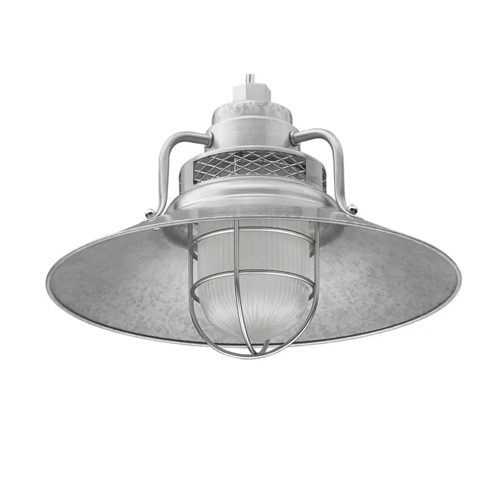 Collection: R Series, Finish Color: Galvanized, Width: 18", Height: 10", Number Of Bulbs: 1, Wattage: 100 Watts, Moisture Rating: Damp Rated, Desc: From the R Series Collection, this Railroad Shade(only) has been designed for versatility. This product is constructed in metal and durable. Customize your shade by selecting from a variety of shade finishes. This shade can be converted to a pendant of a wall sconce with the purchase of separate compatible downrod (stems) or arm (gooseneck) accessory. Features: This products is available in a variety of finishes. / Constructed from metal / 1 year limited manufacture's warranty / This item is UL listed / Meets CSA standards / This item is rated for wet location. / Professional installation recommended. / Shade Dimensions: 10". This item can be converted to a pendant or wall sconce with purchase of separate compatible downrod or goose neck. Please see compatible downrods and goose neck below: Compatible downrods: RS1, RS2, and RS
